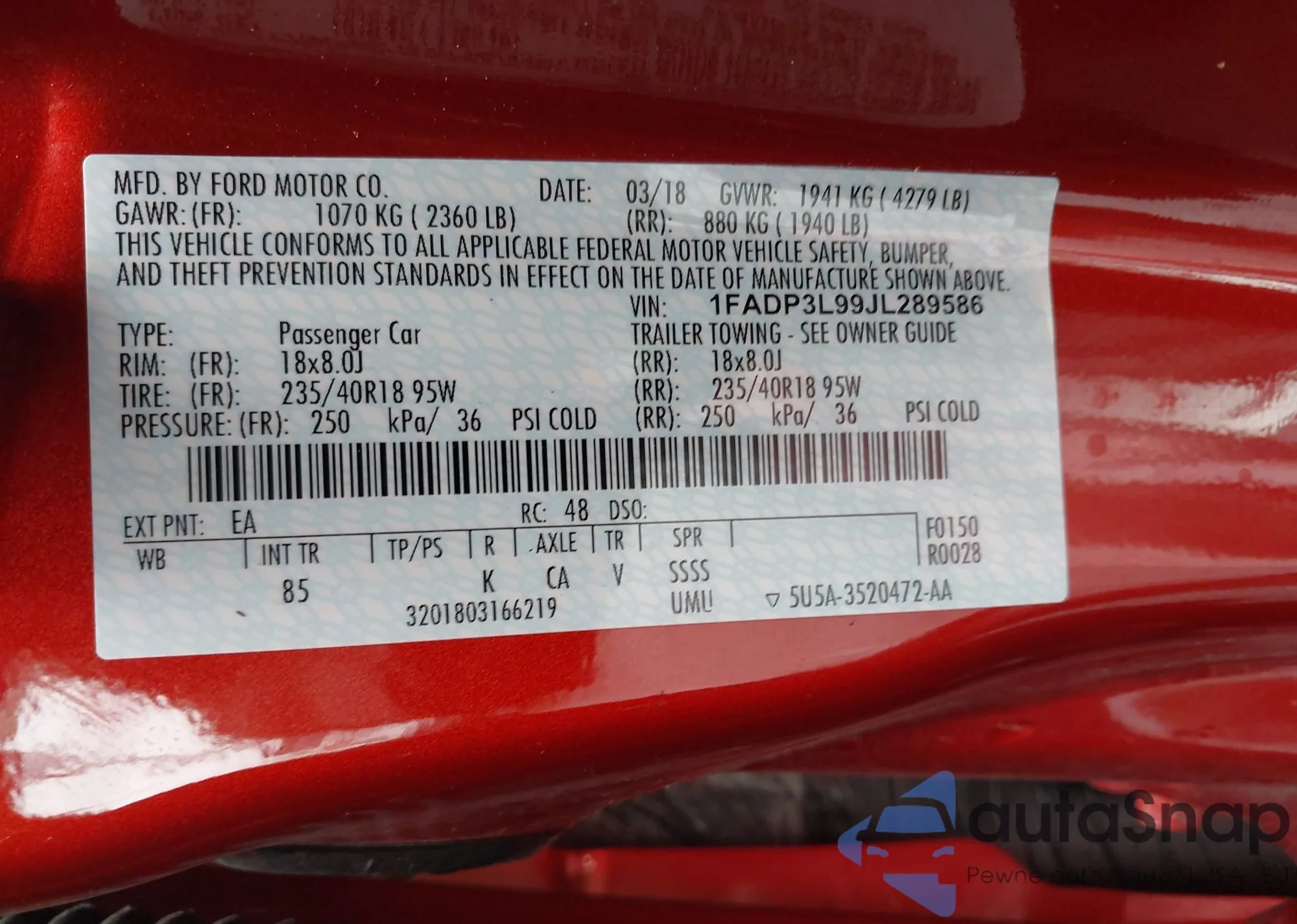 • VIN 1FADP3L99JL289586