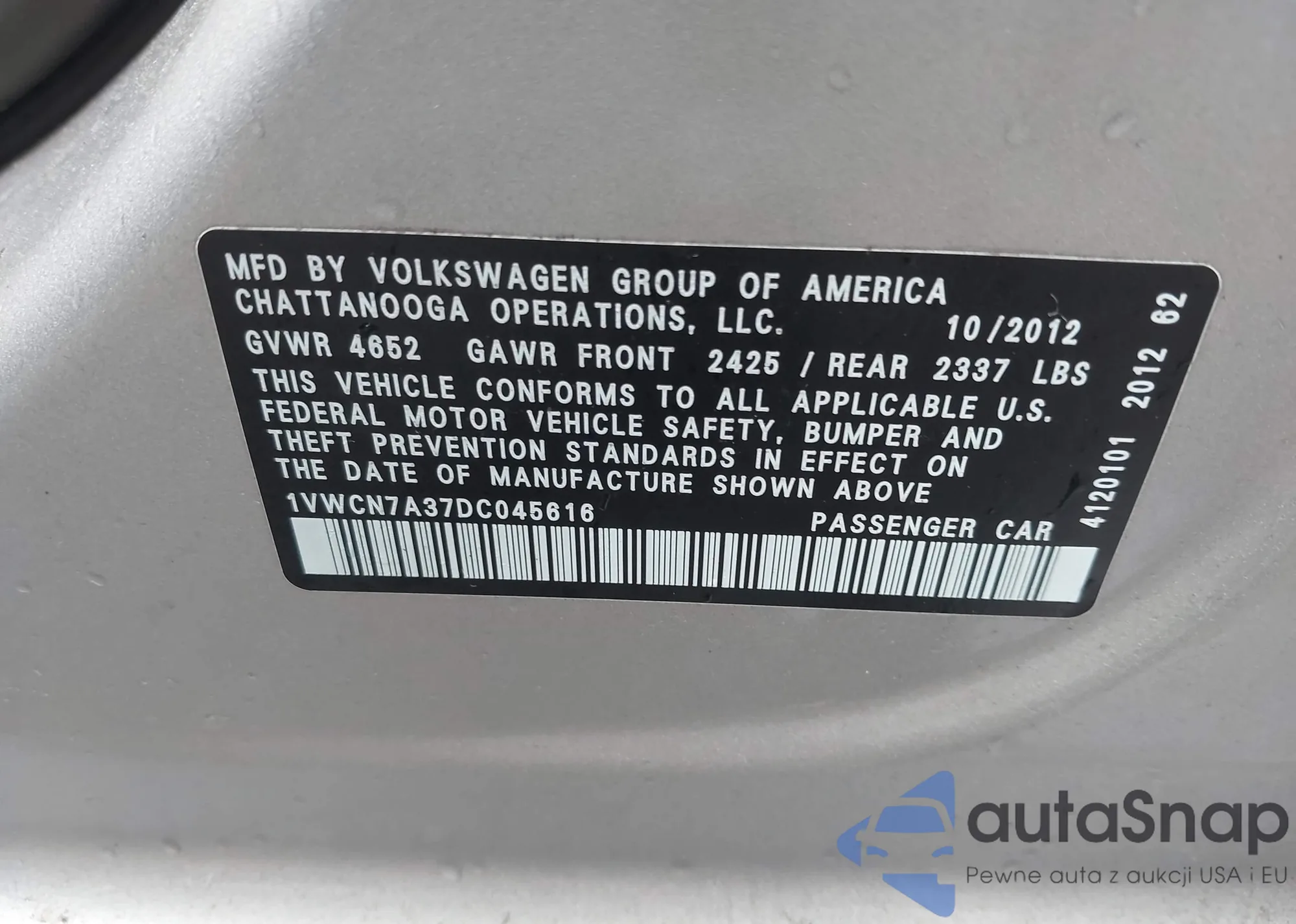 LOT: 42236017 VIN: 1VWBT7A36HC018088