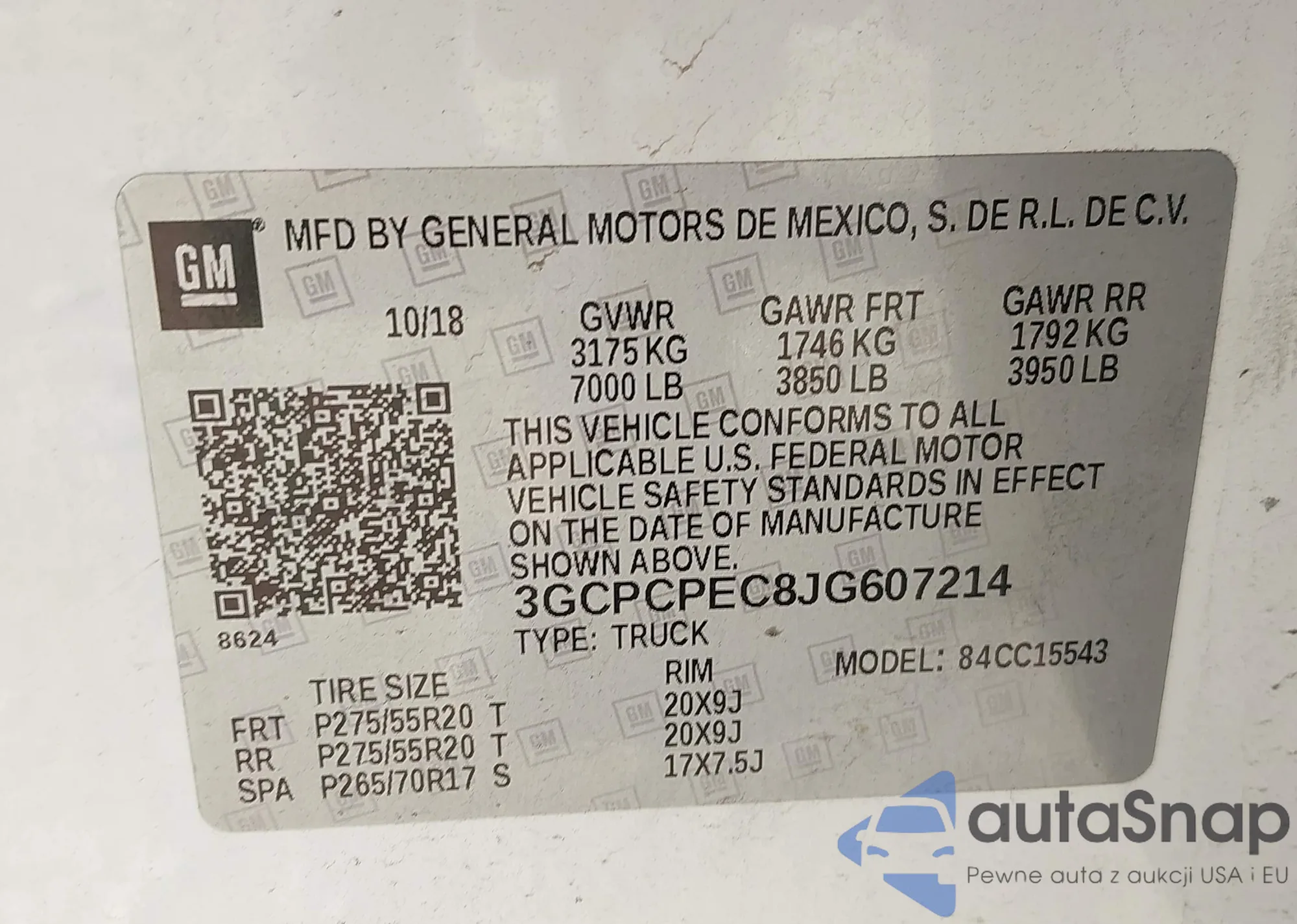 • VIN 1GYS3JKJXFR298776