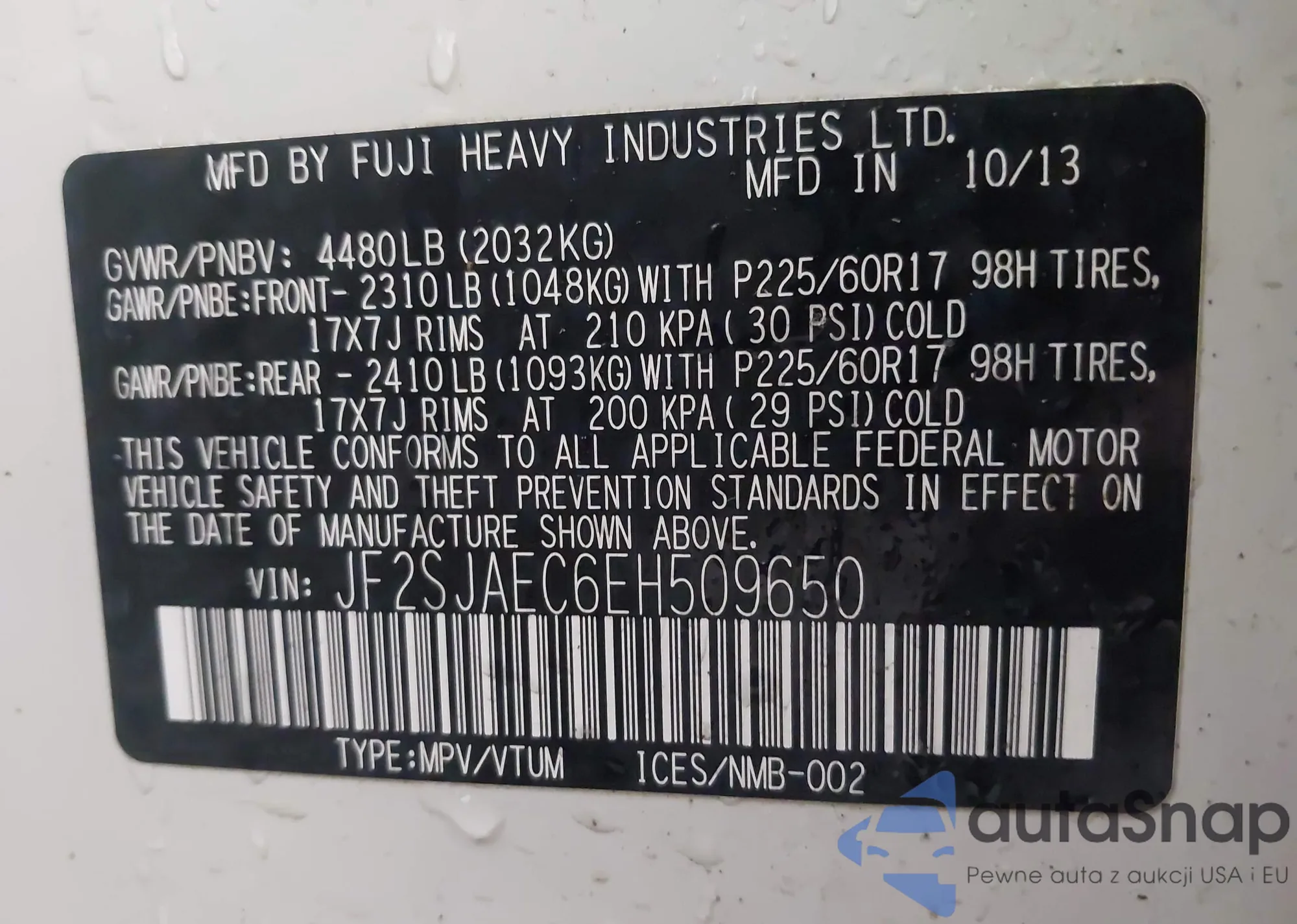 LOT: 42362379 VIN: JF1GPAD68CH219928