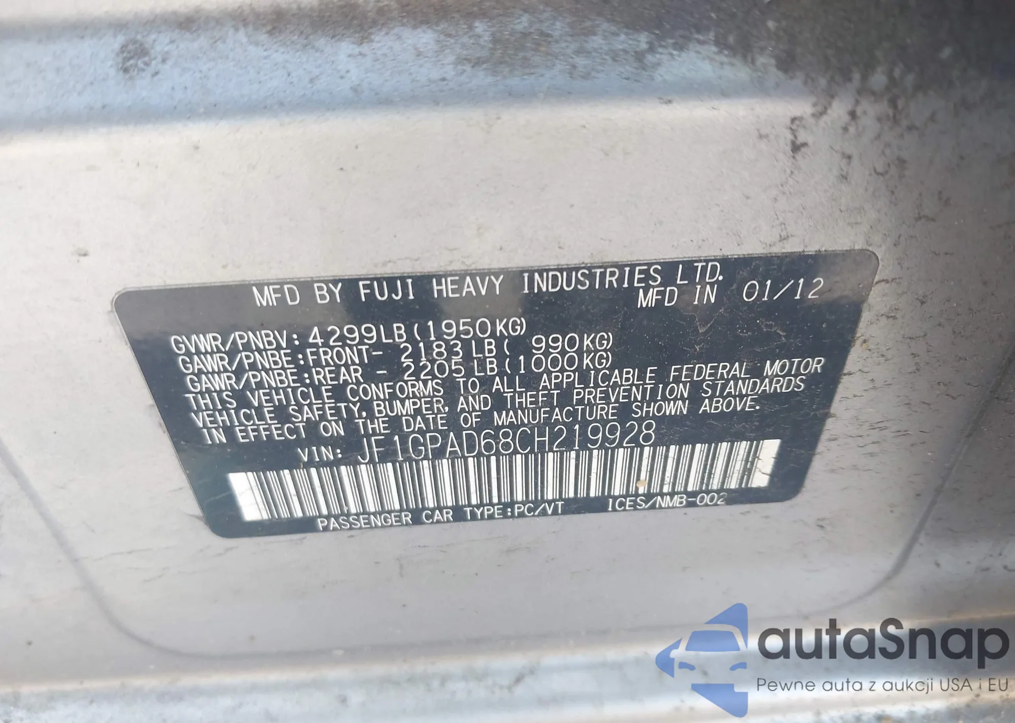• VIN JF1GPAD68CH219928