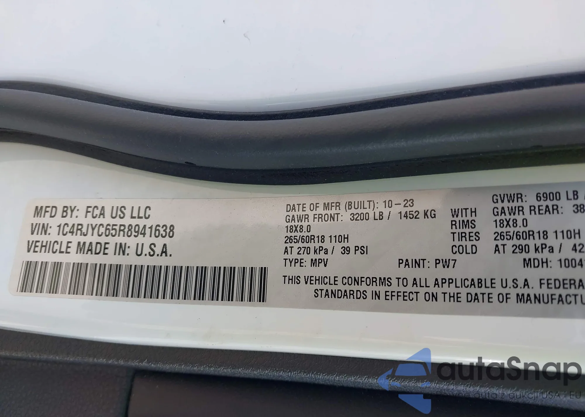 • VIN 1C4RJYC65R8941638
