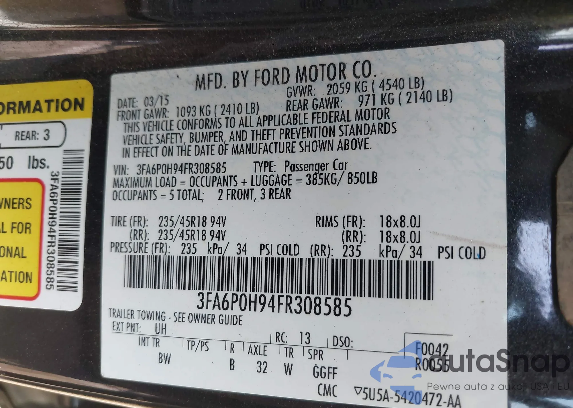 • VIN 3FA6P0H94FR308585