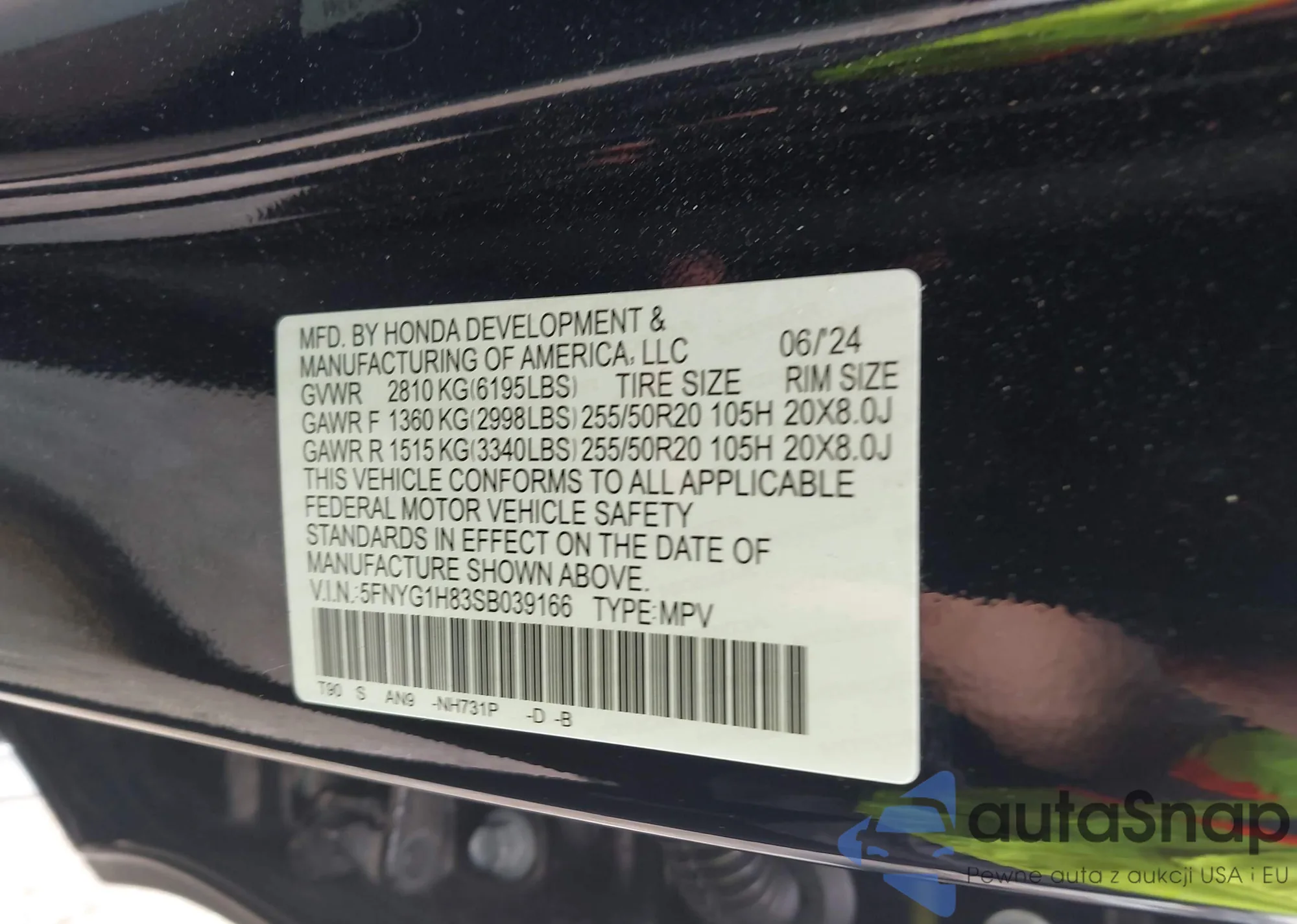 LOT: 42329031 VIN: 2HGFA55597H707131