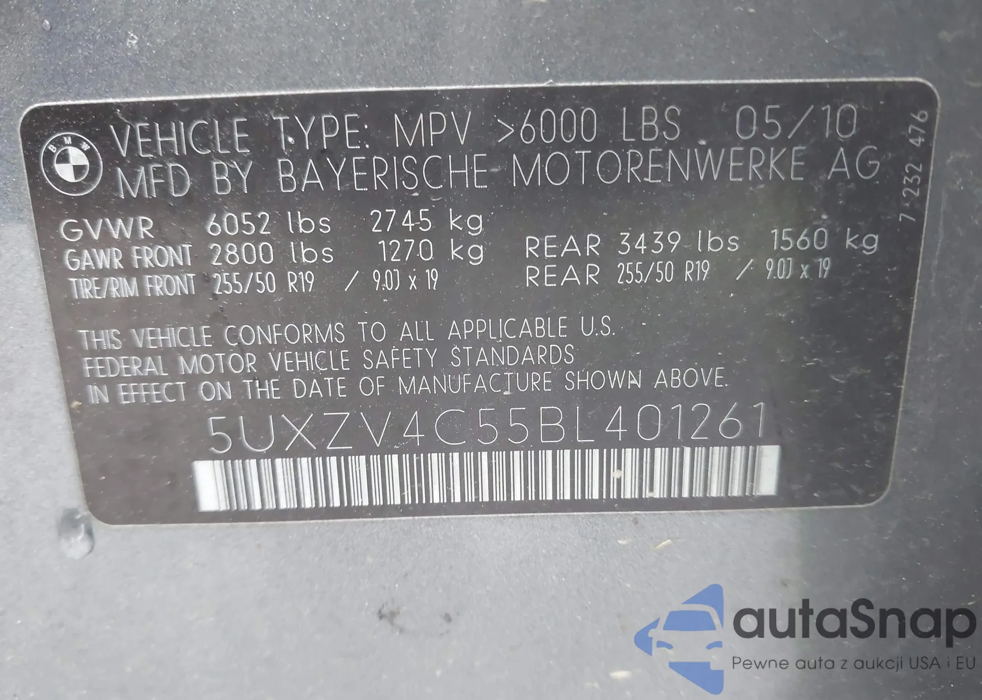 • VIN 5UXZV4C55BL401261