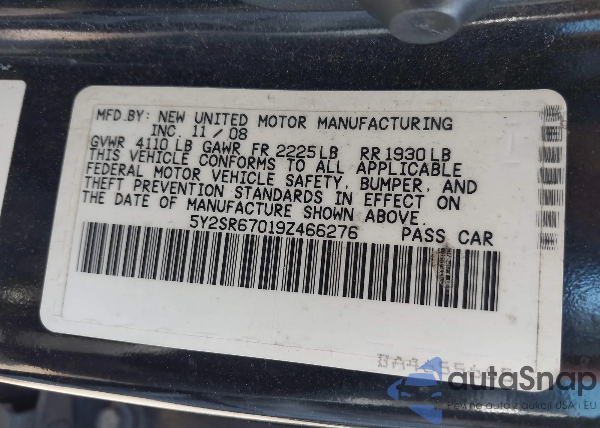 • VIN 5Y2SR67019Z466276