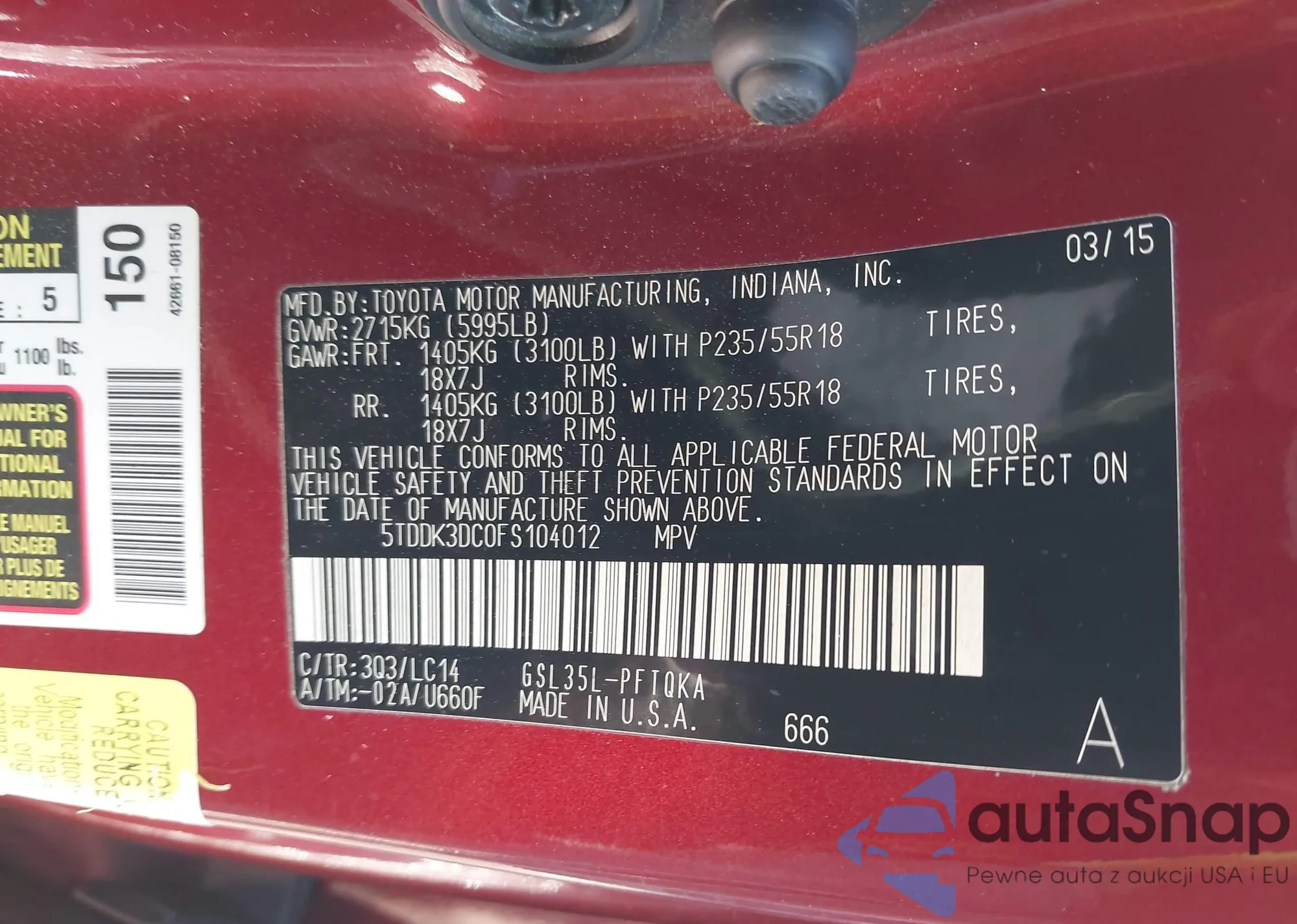 LOT: 41935233 VIN: 5TDDK3DC0FS104012