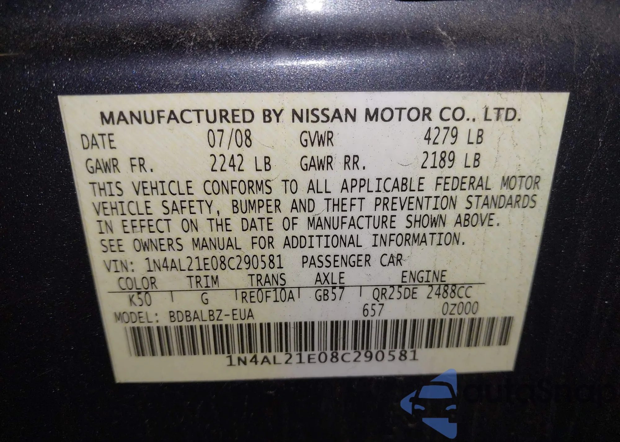 LOT: 42132940 VIN: 1N4AL21E08C290581