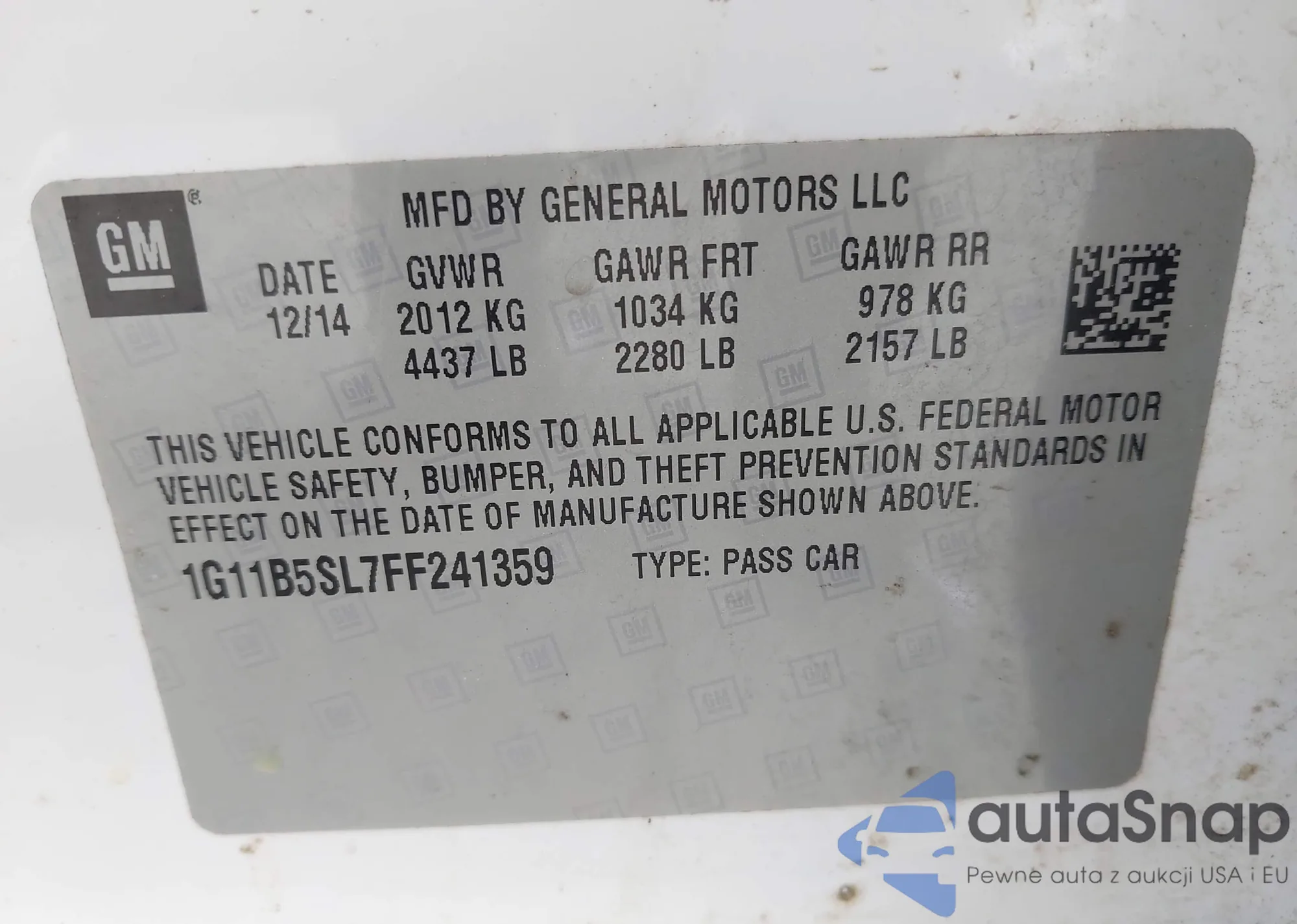 • VIN 1G11B5SL7FF241359