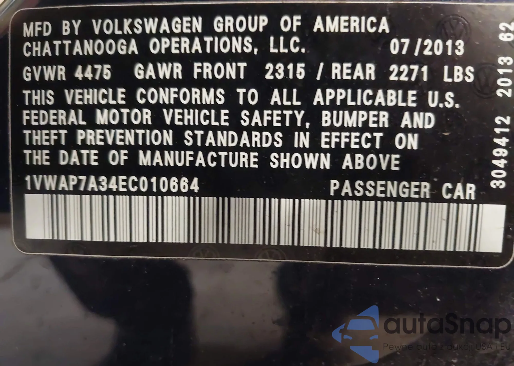 • VIN 1VWAP7A34EC010664
