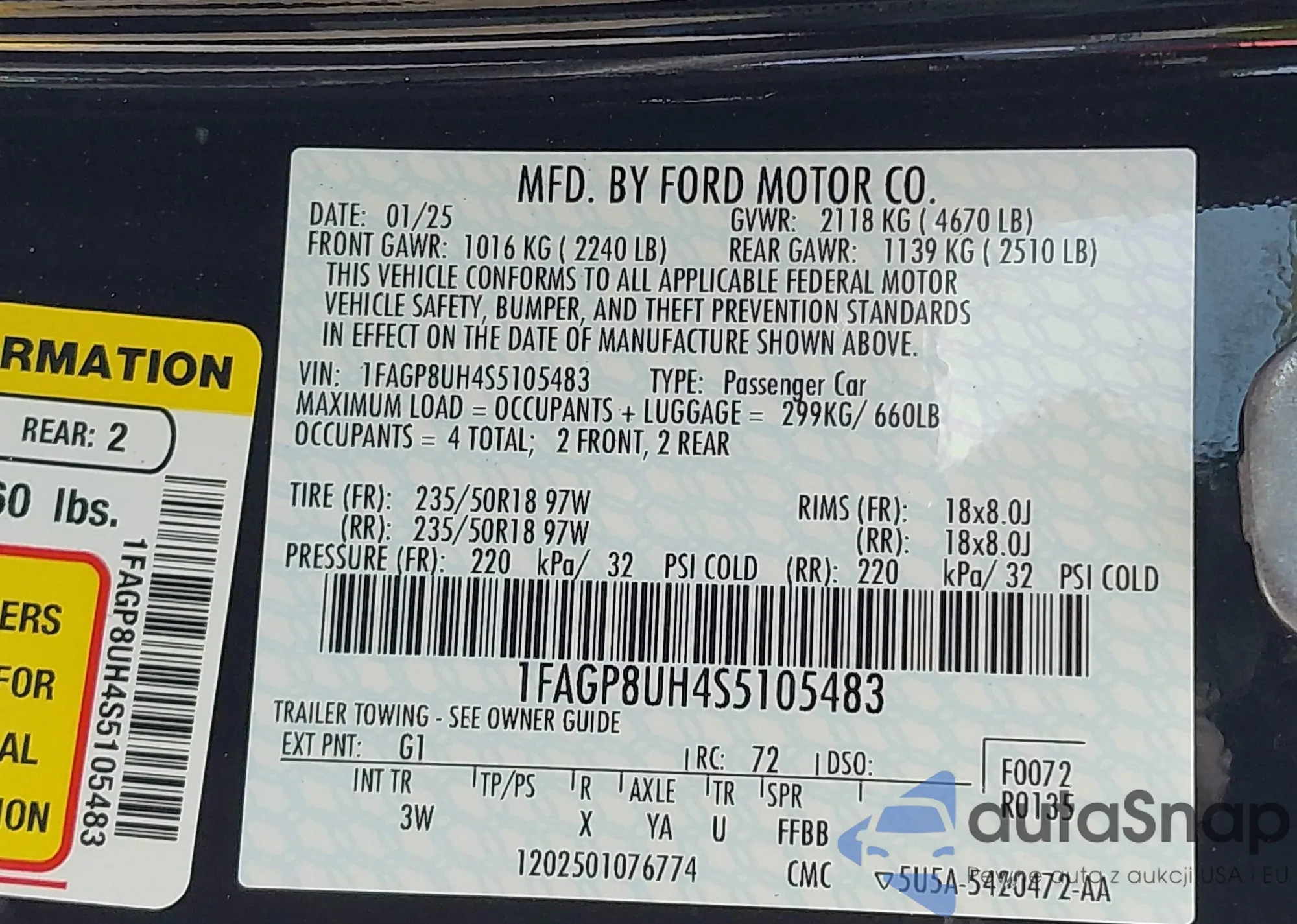 • VIN 1FAGP8UH4S5105483