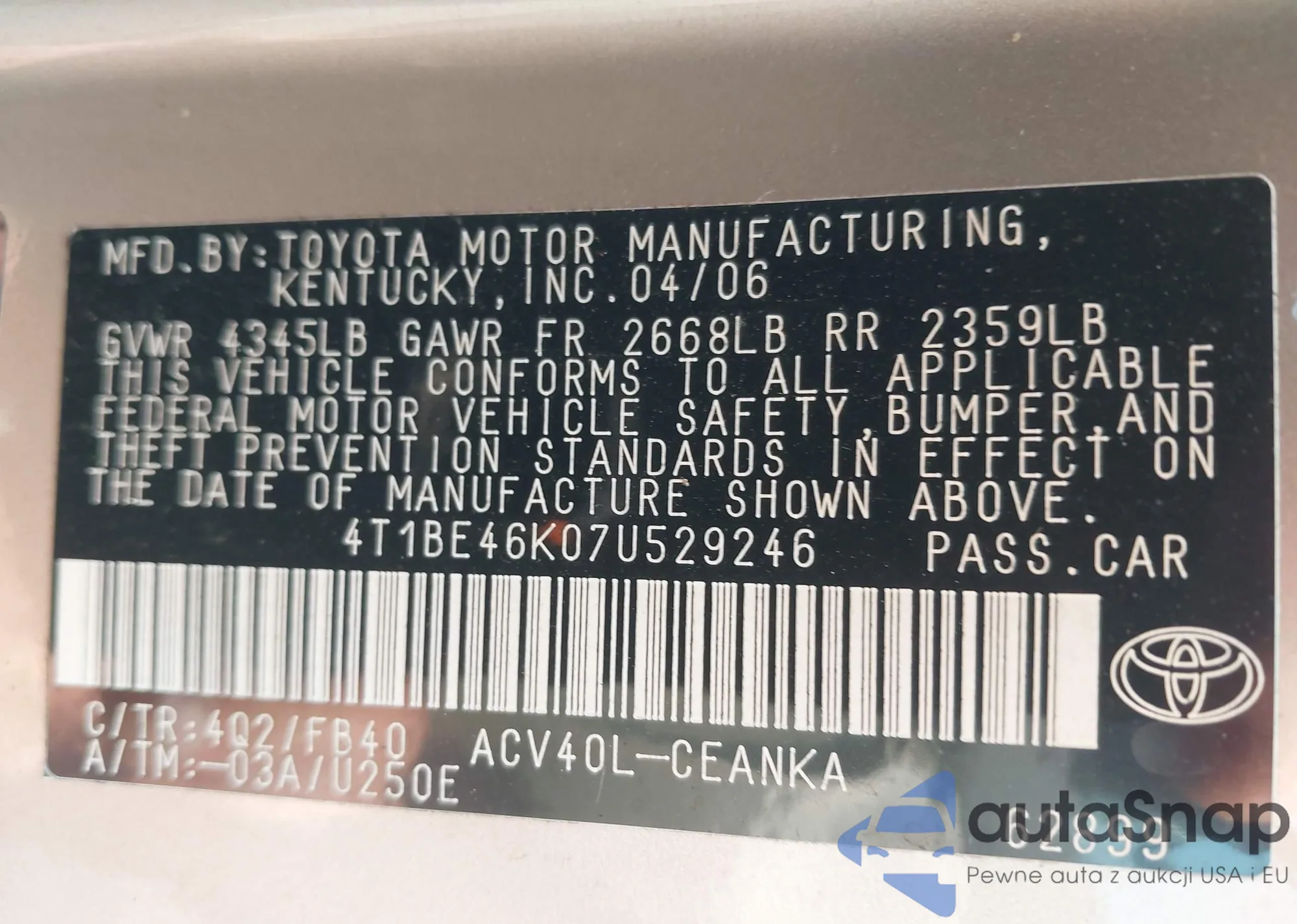 LOT: 42410712 VIN: JTJHF10U710207770