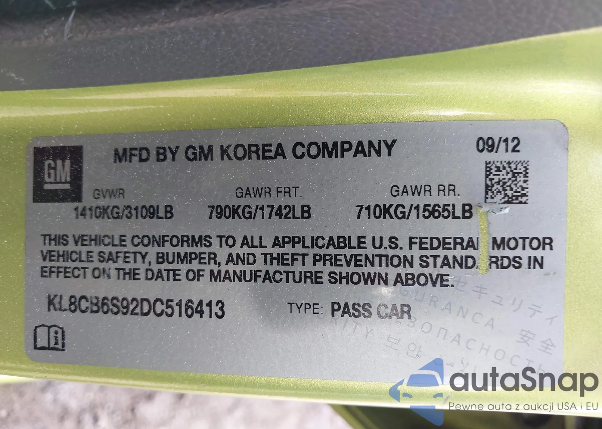 • VIN KL8CB6S92DC516413