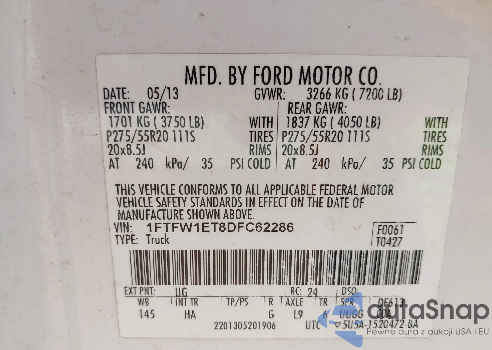 • VIN 1FTFW1ET8DFC62286