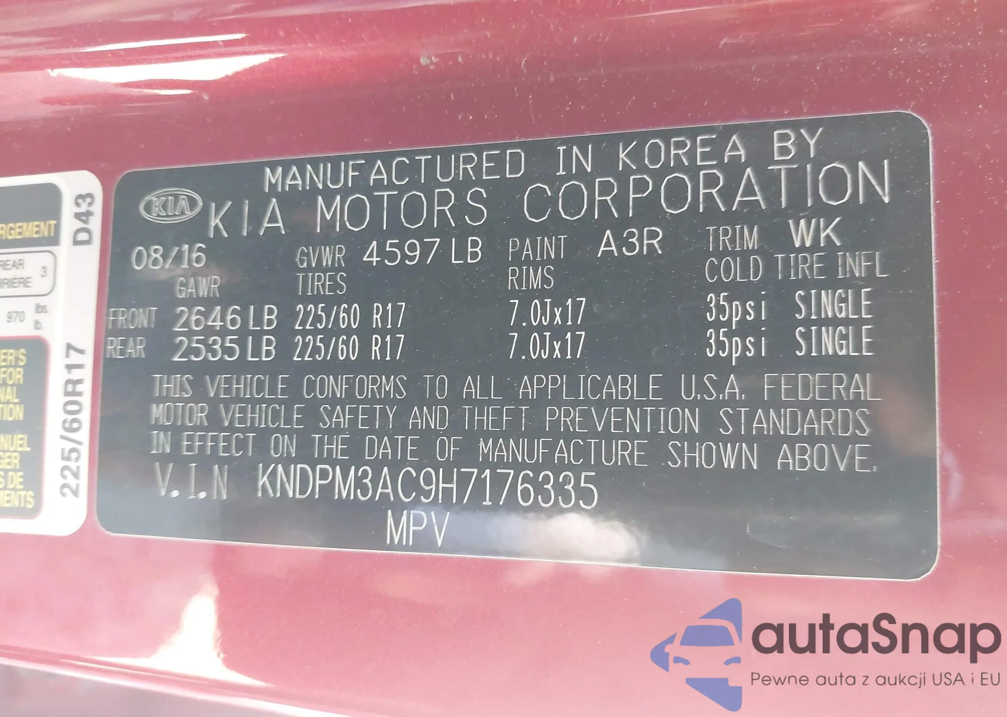 • VIN 5XYPGDA54HG242436