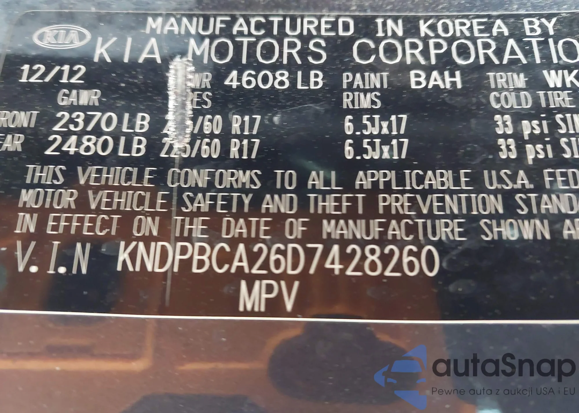 • VIN KNDPBCA26D7428260