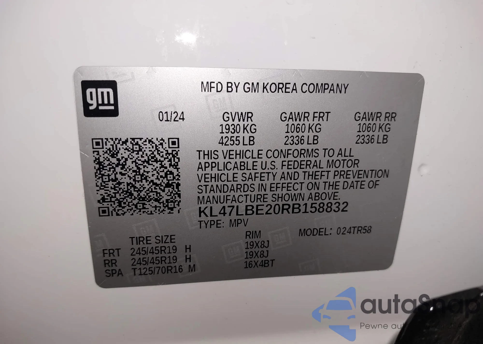 LOT: 42164461 VIN: KL47LBE20RB158832