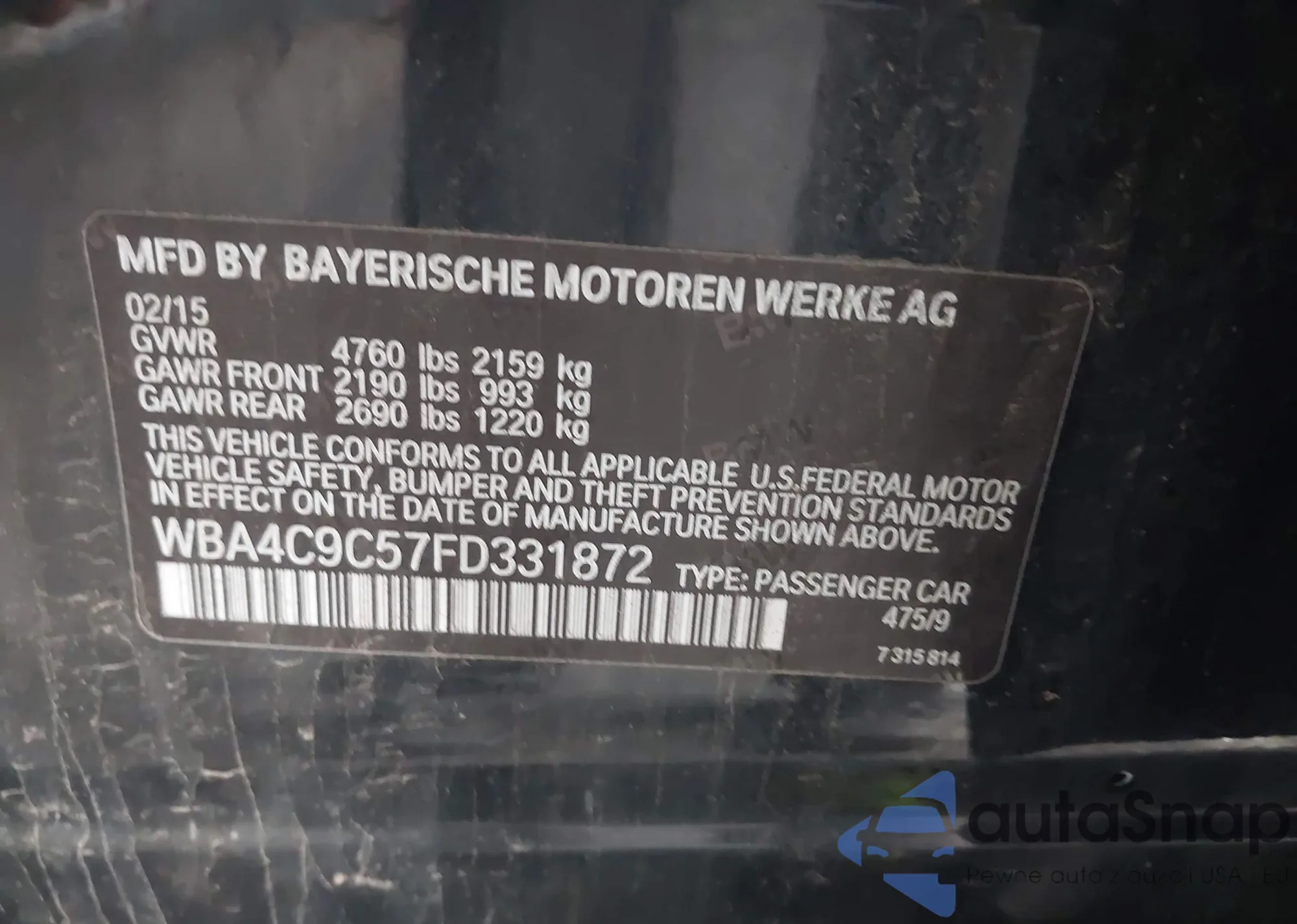 • VIN WBA4C9C57FD331872