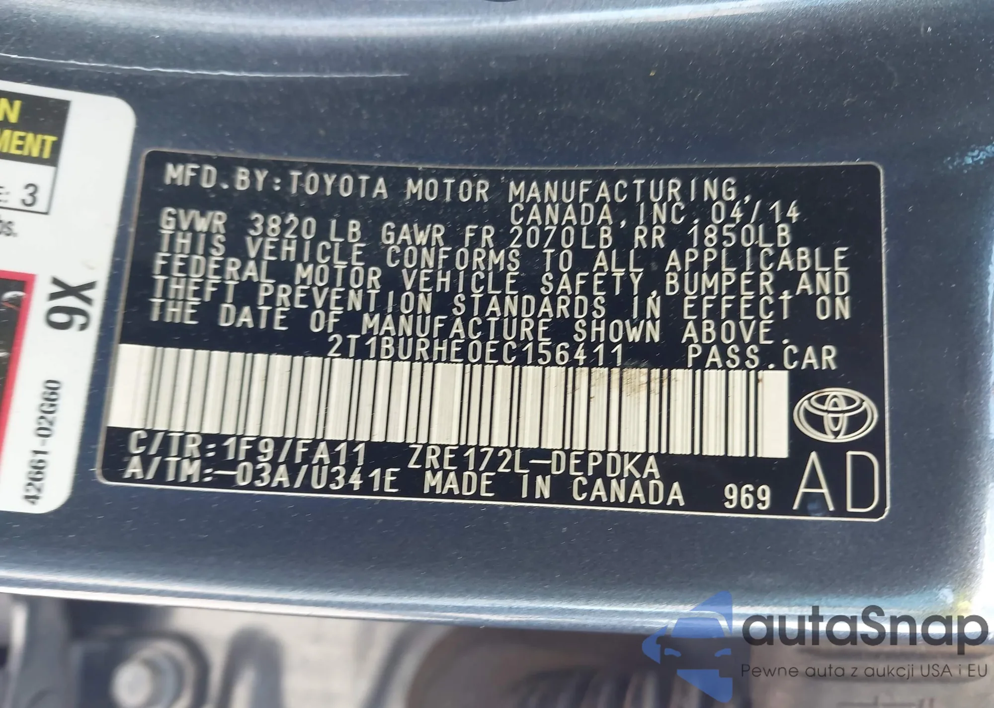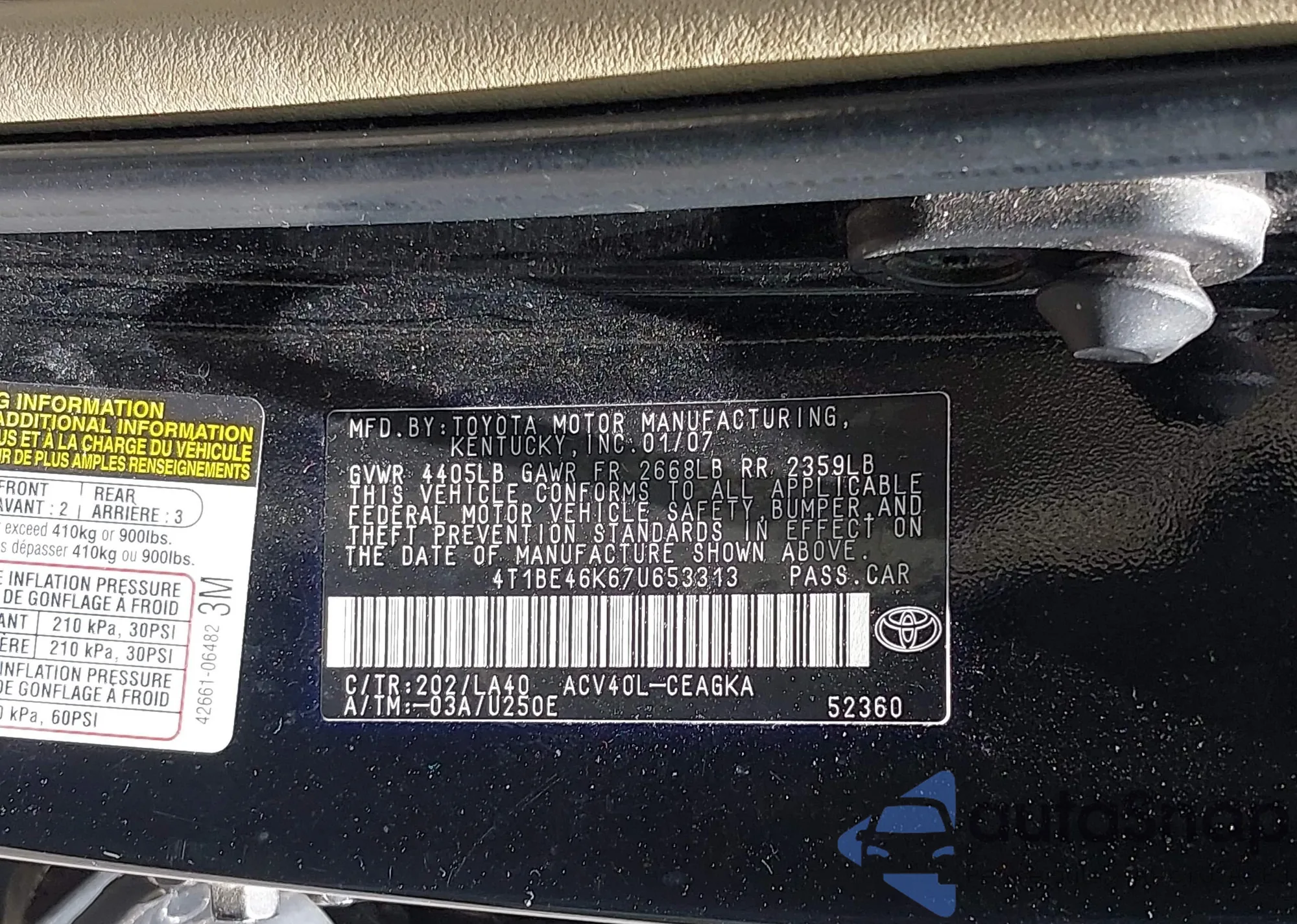 • VIN 4T1BE46K67U653313