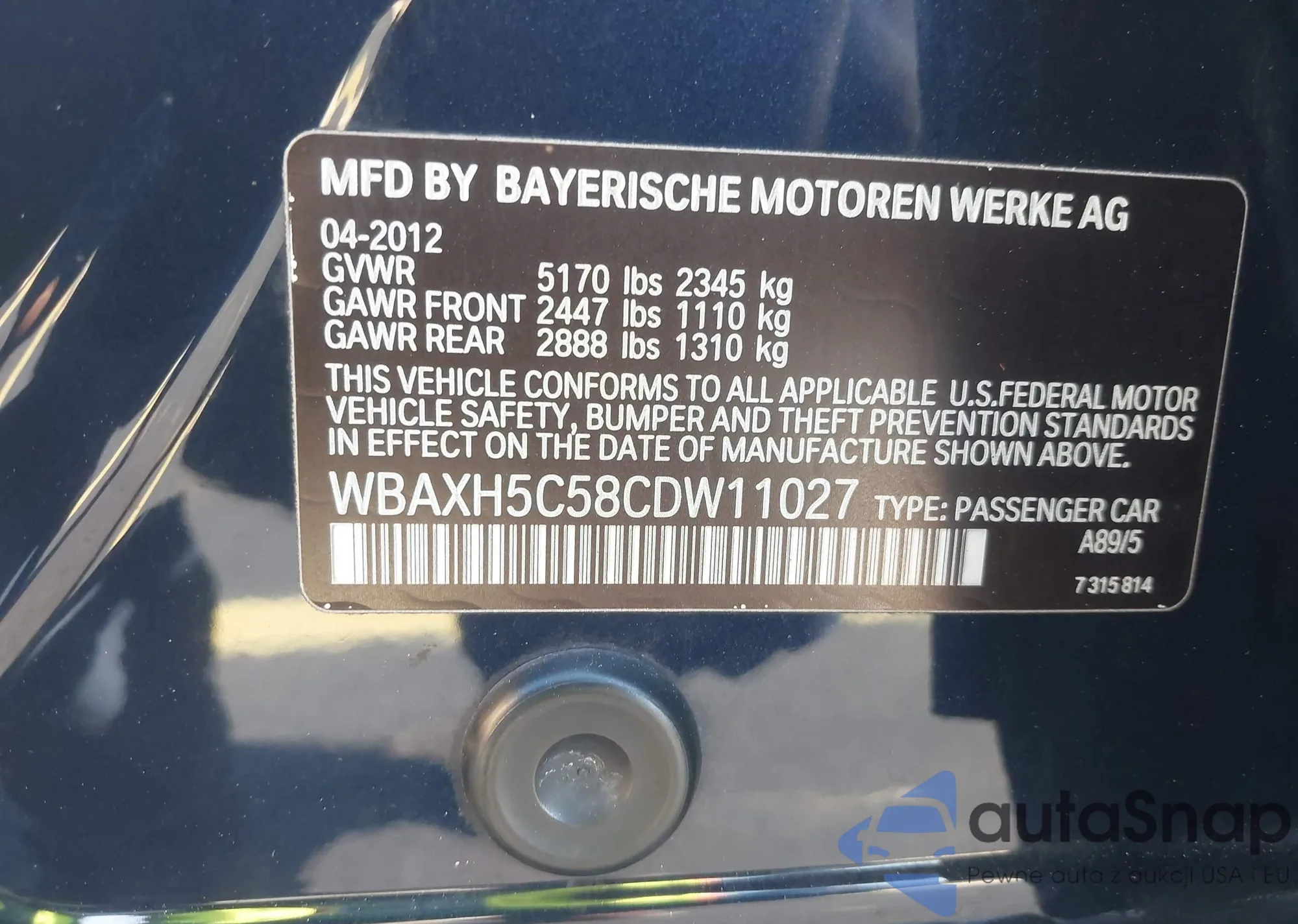 • VIN WBA5A5C52ED511357