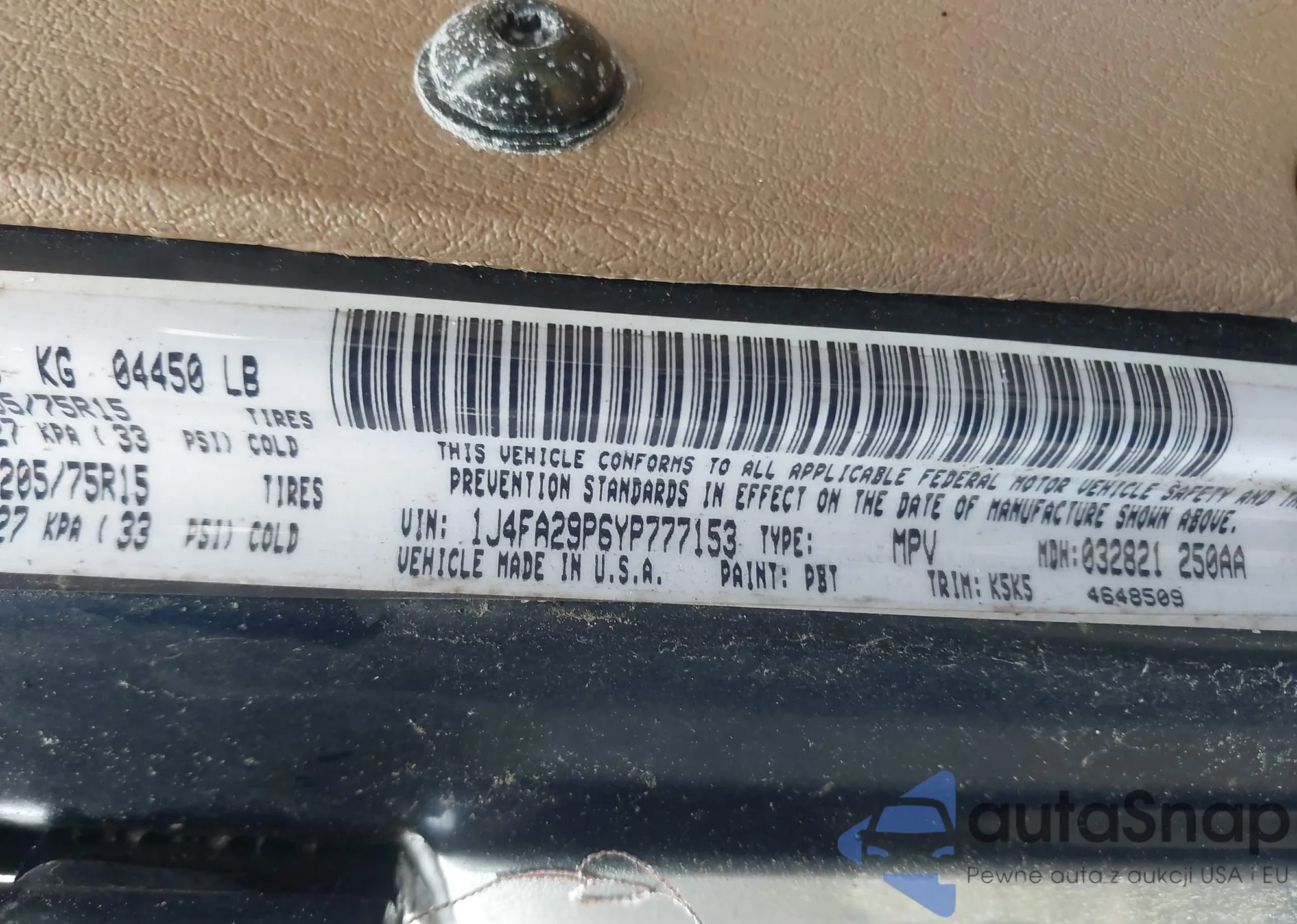 • VIN 1J4FA29P6YP777153