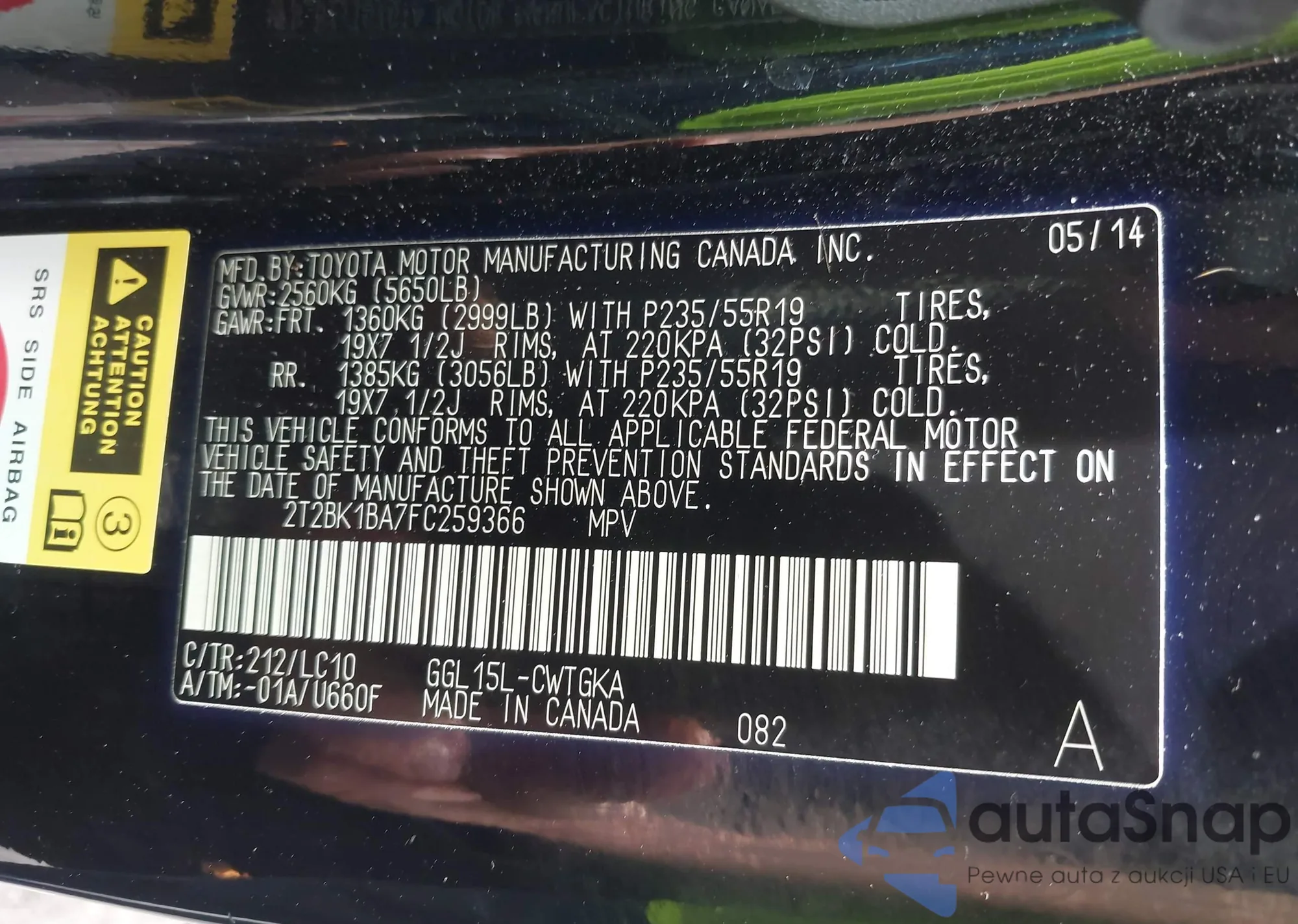 LOT: 42312343 VIN: JF2SJAAC0FG428267
