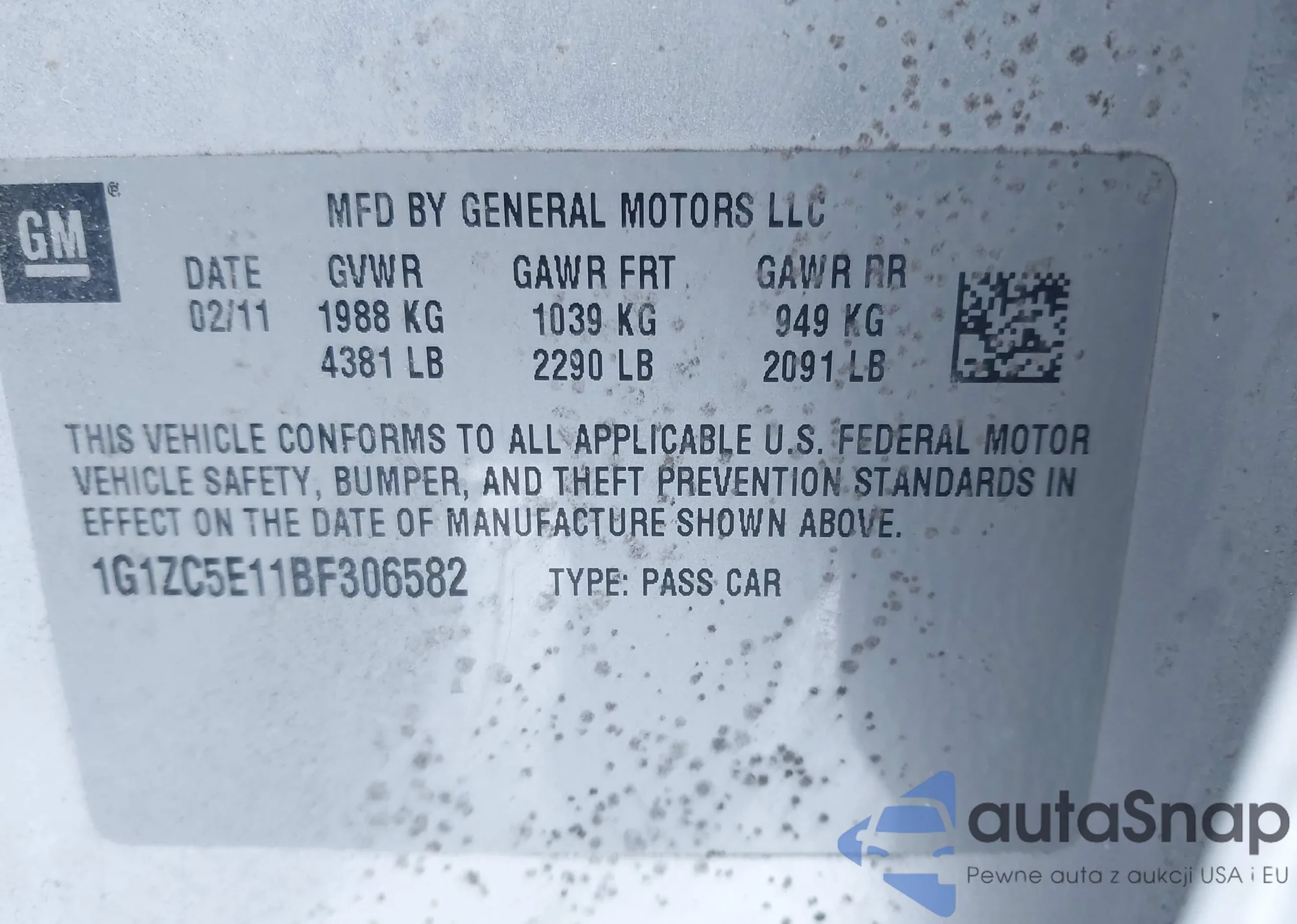 • VIN 1G1ZC5E11BF306582