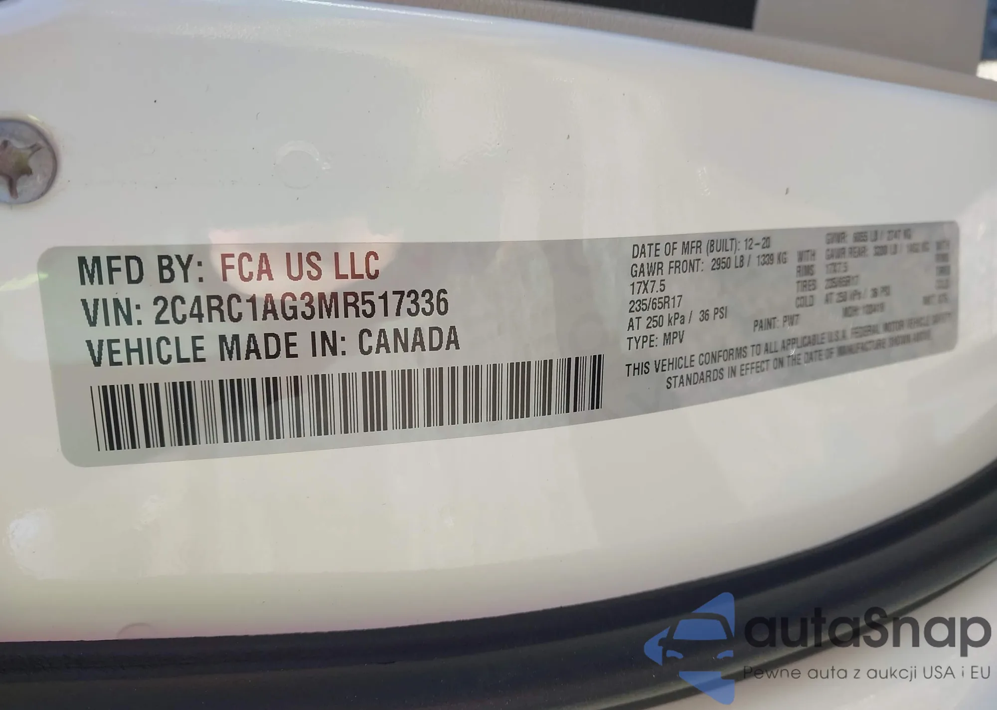 • VIN 2C4RC1AG3MR517336