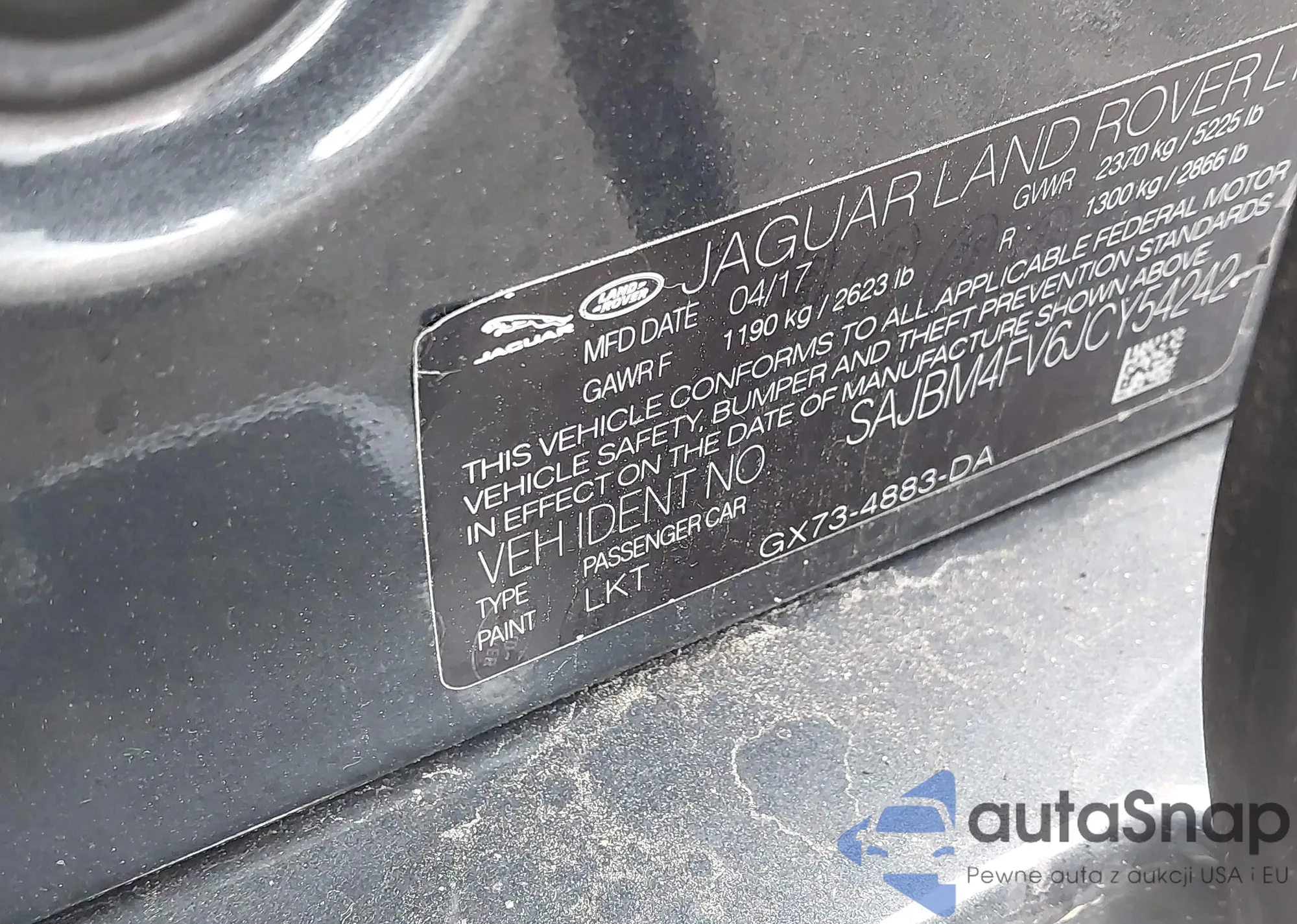 LOT: 42031078 VIN: SAJBM4FV6JCY54242