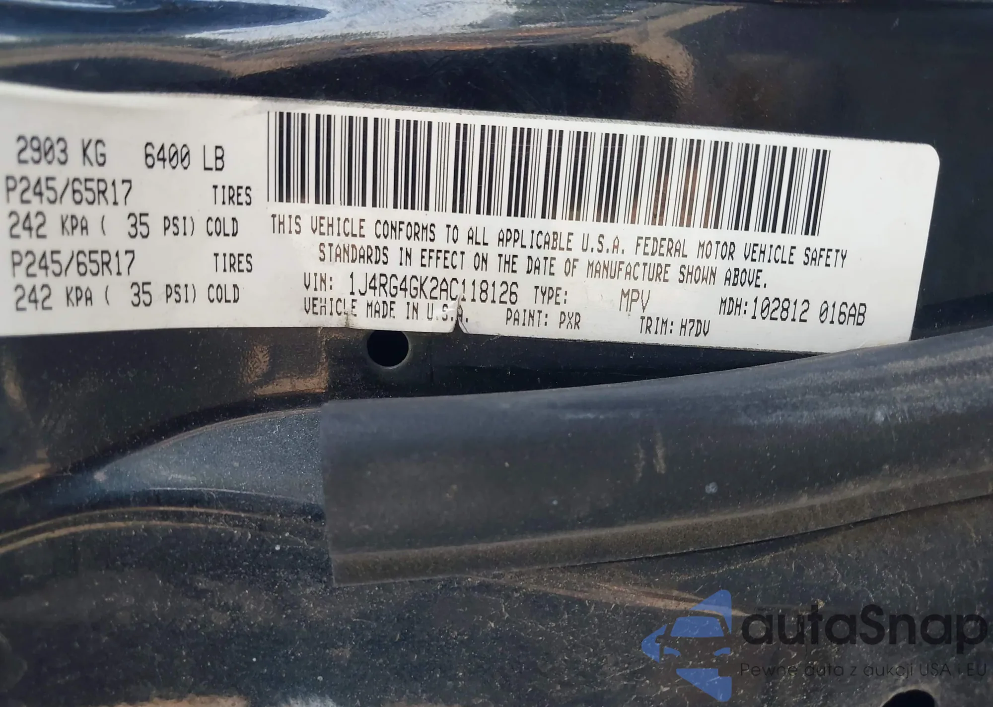 LOT: 42345486 VIN: 1J4RG4GK2AC118126