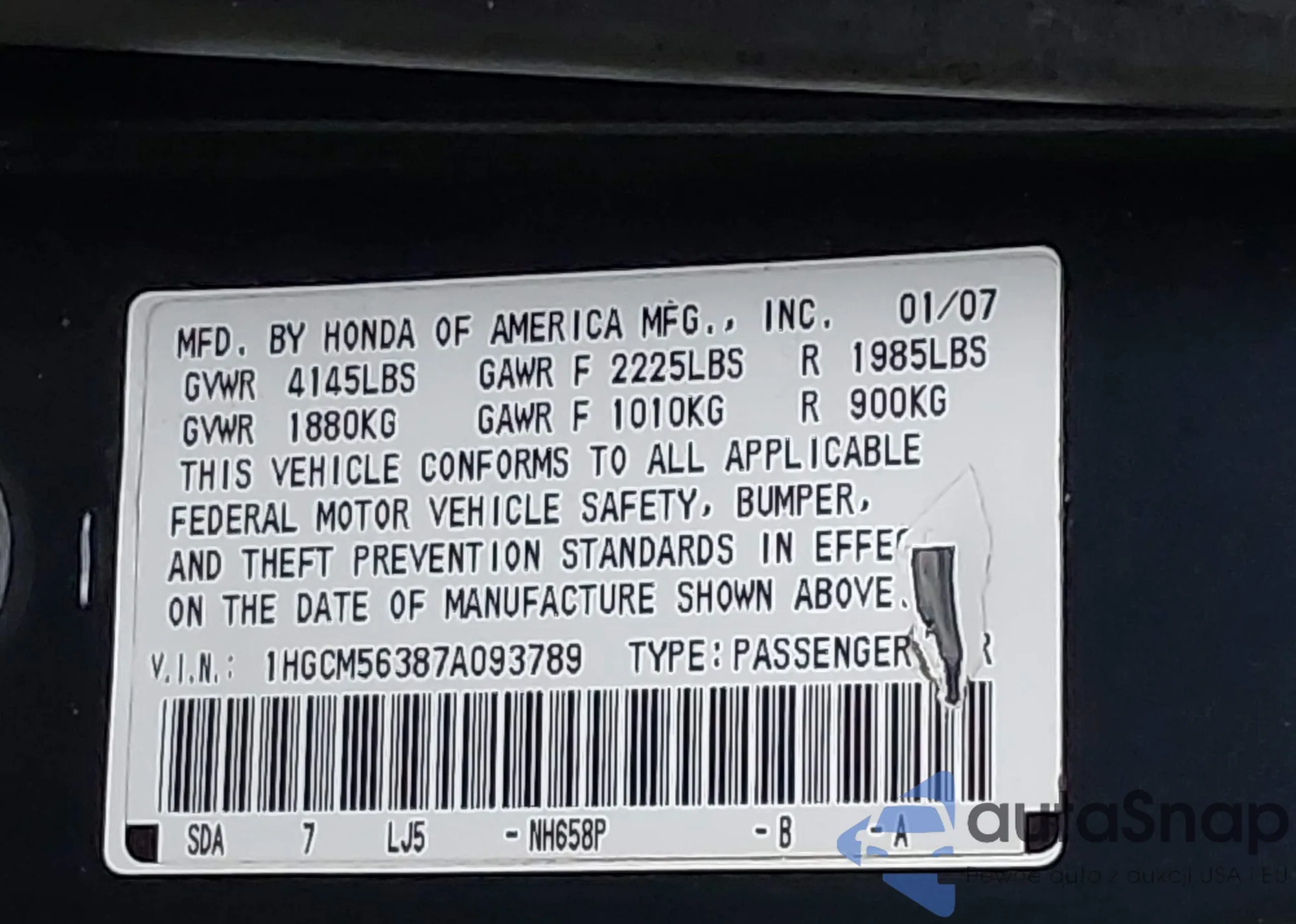 • Damage: Right side