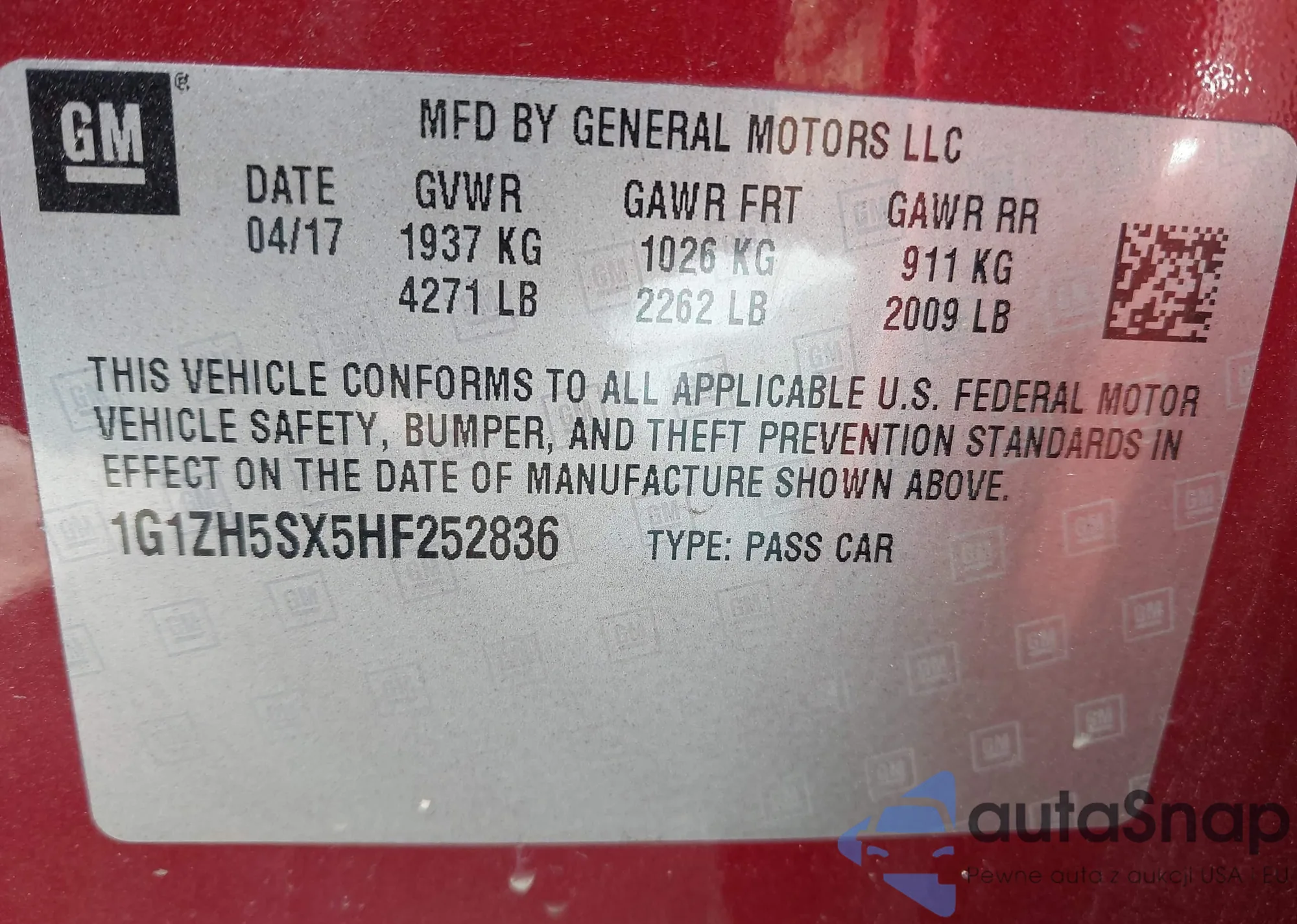 • VIN 1G1ZH5SX5HF252836