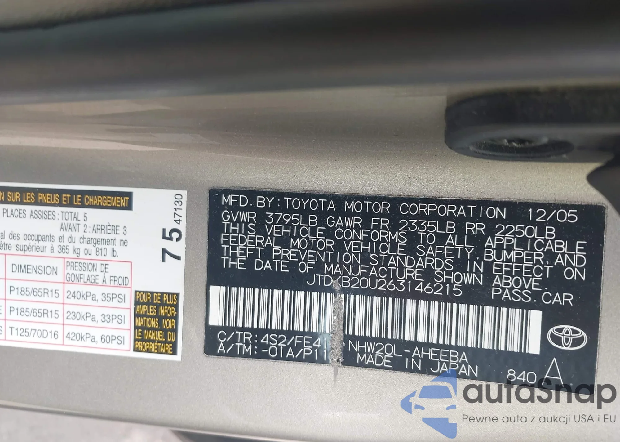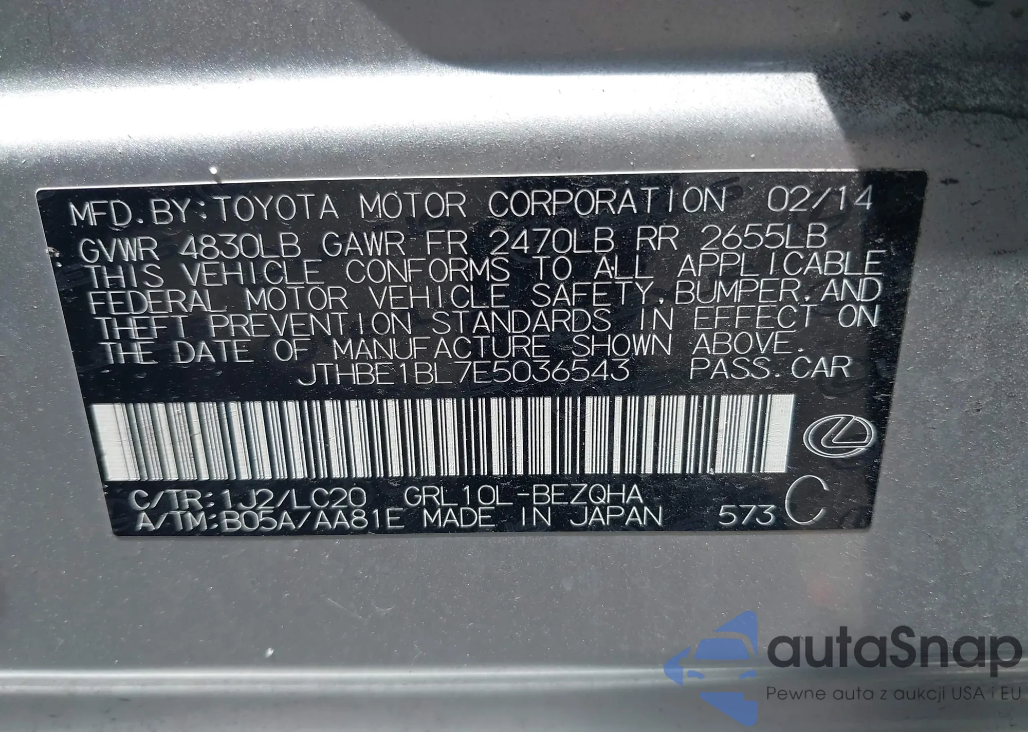 LOT: 42115869 VIN: JTHBE1BL7E5036543