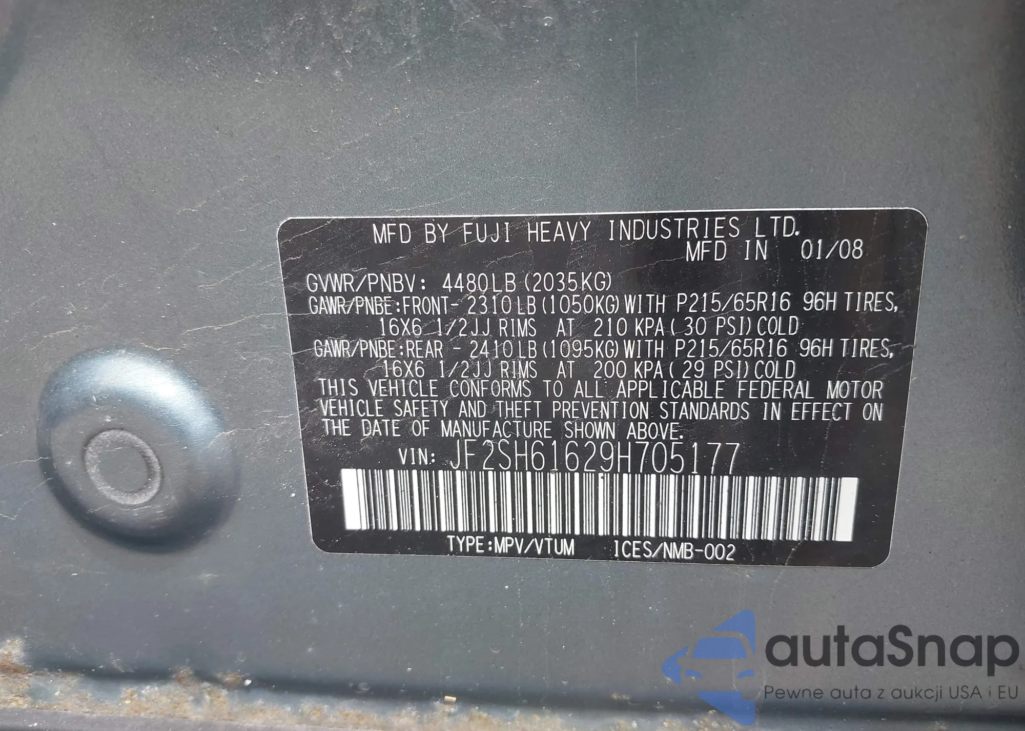 LOT: 42363353 VIN: JF2SH61629H705177