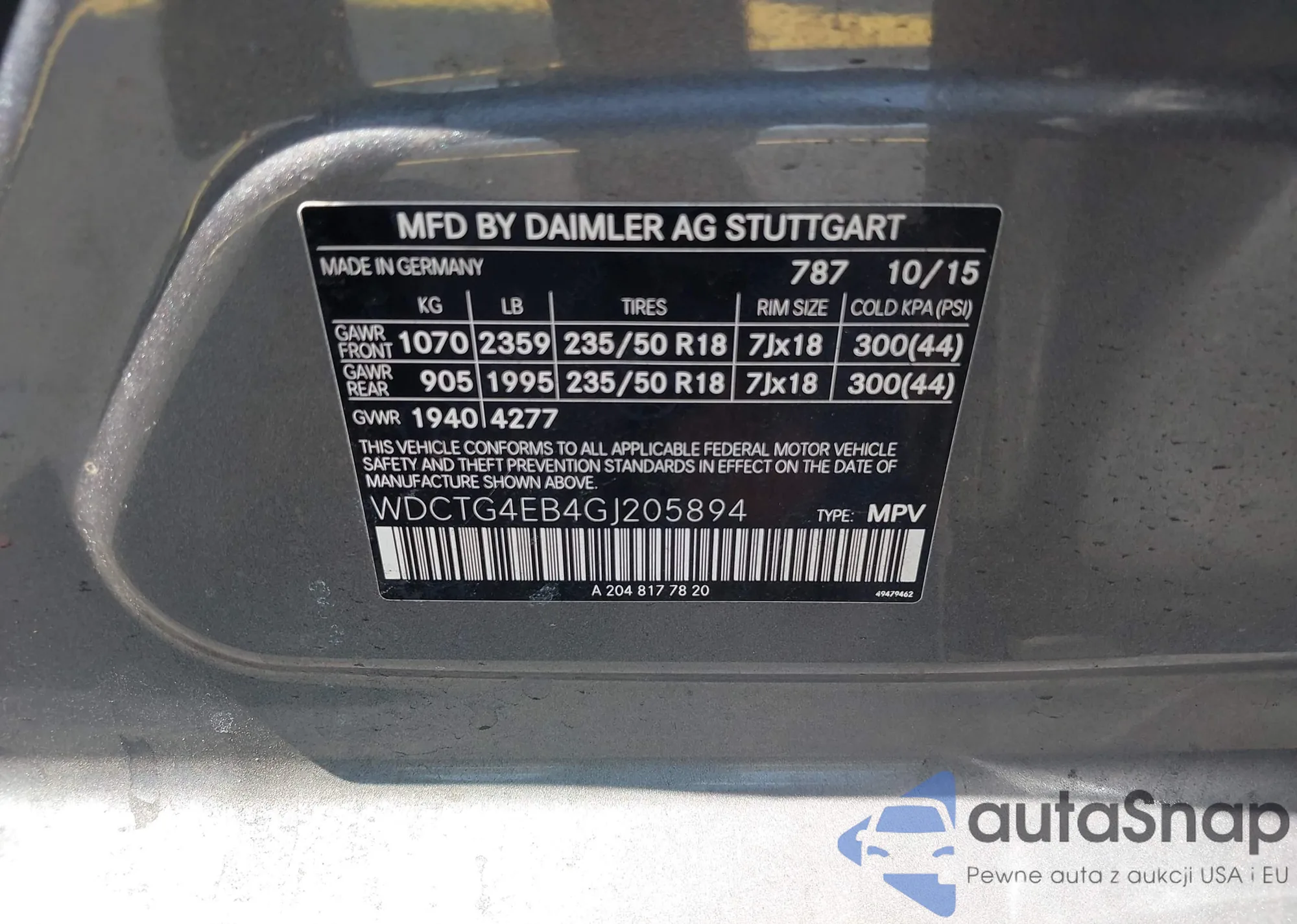 LOT: 42315750 VIN: WMWRF33578TF67945