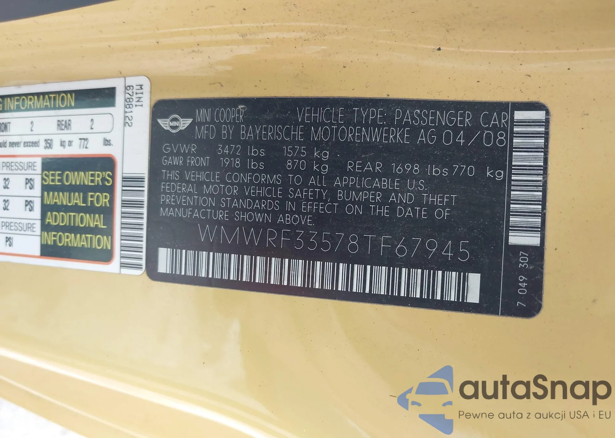 • VIN WMWRF33578TF67945