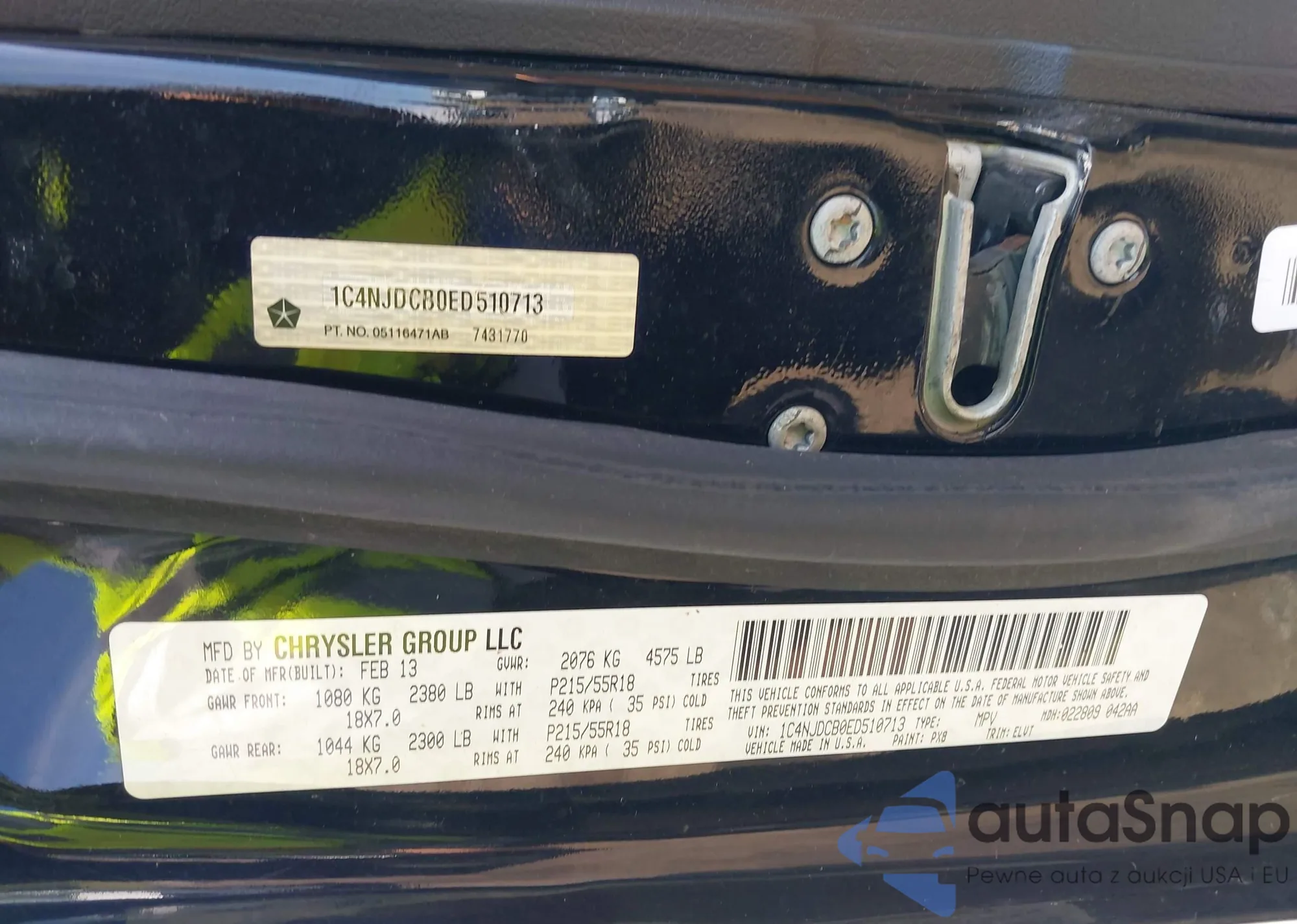 • VIN 1C4RJFAG2DC507344