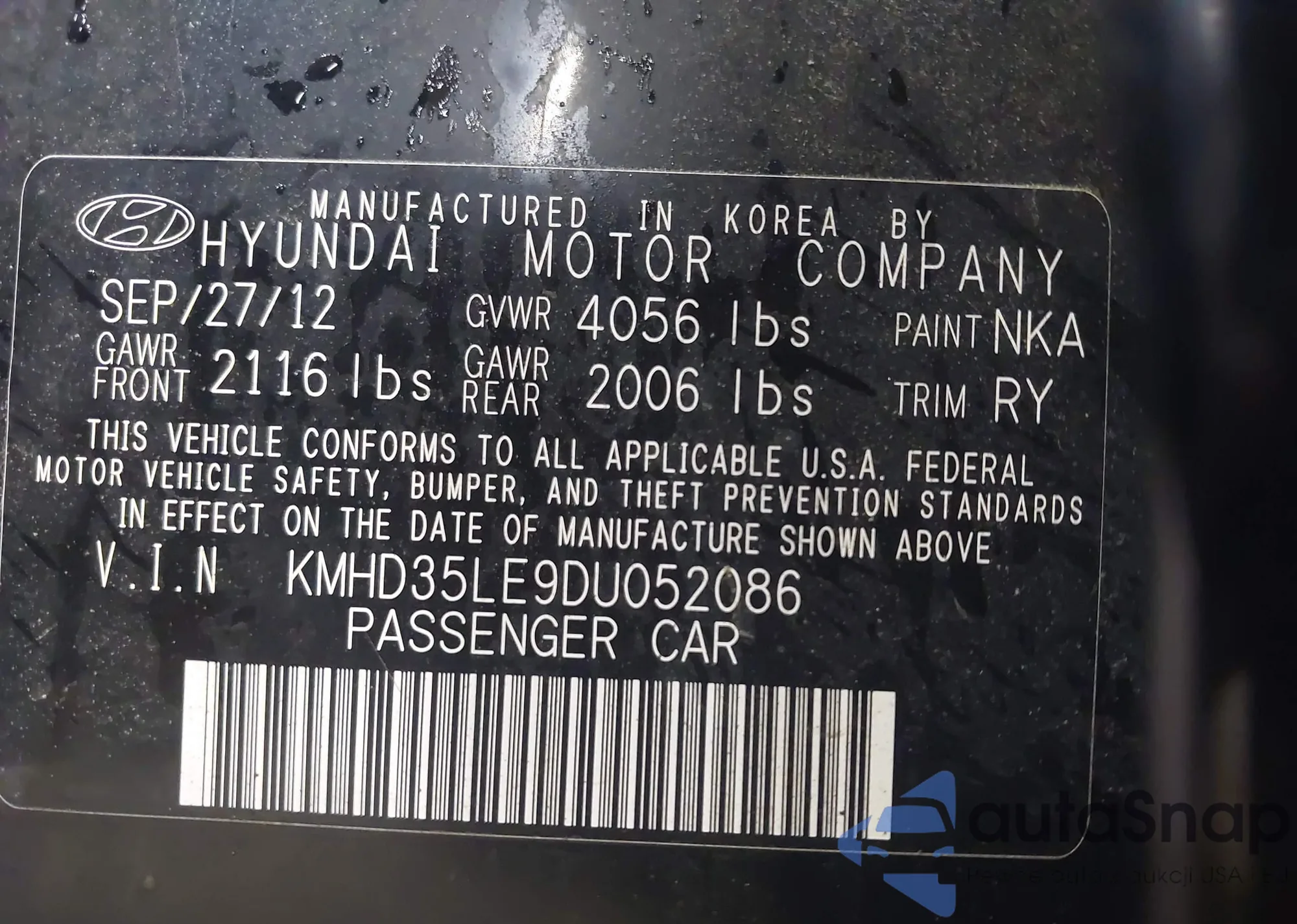 • VIN 1N4AL3AP9FN377226