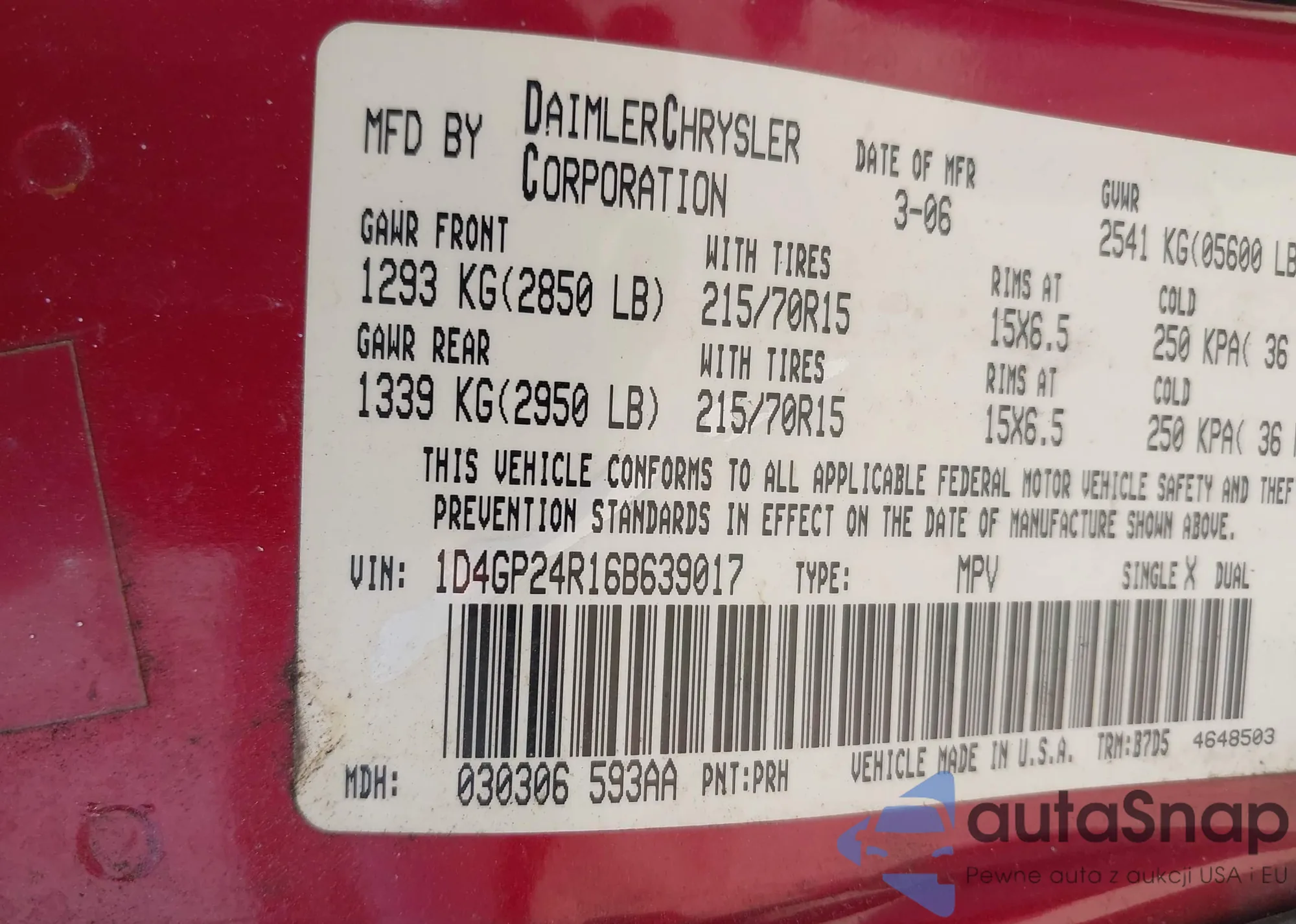 LOT: 42339954 VIN: 1D4GP24R16B639017