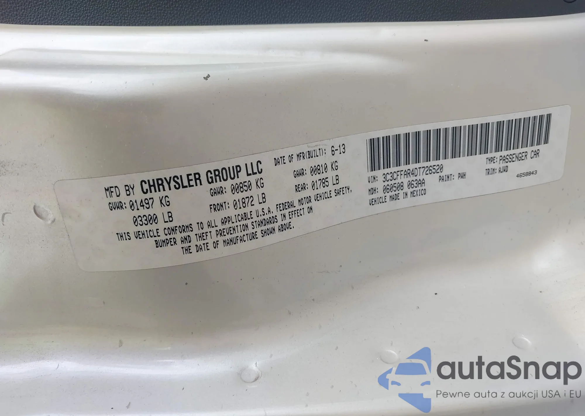 LOT: 41174213 VIN: 3C3CFFAR4DT726520