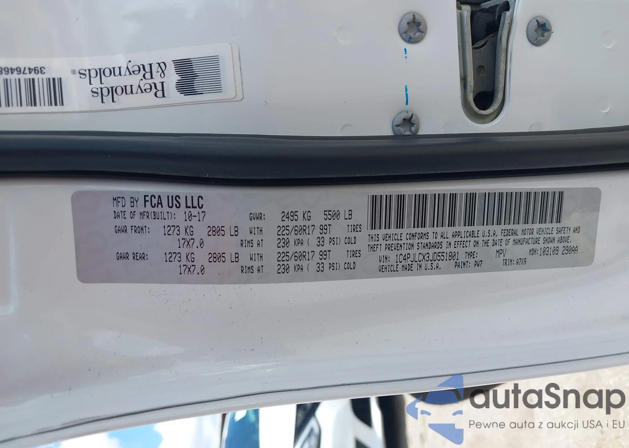 • VIN 1C4PJLCX3JD551801