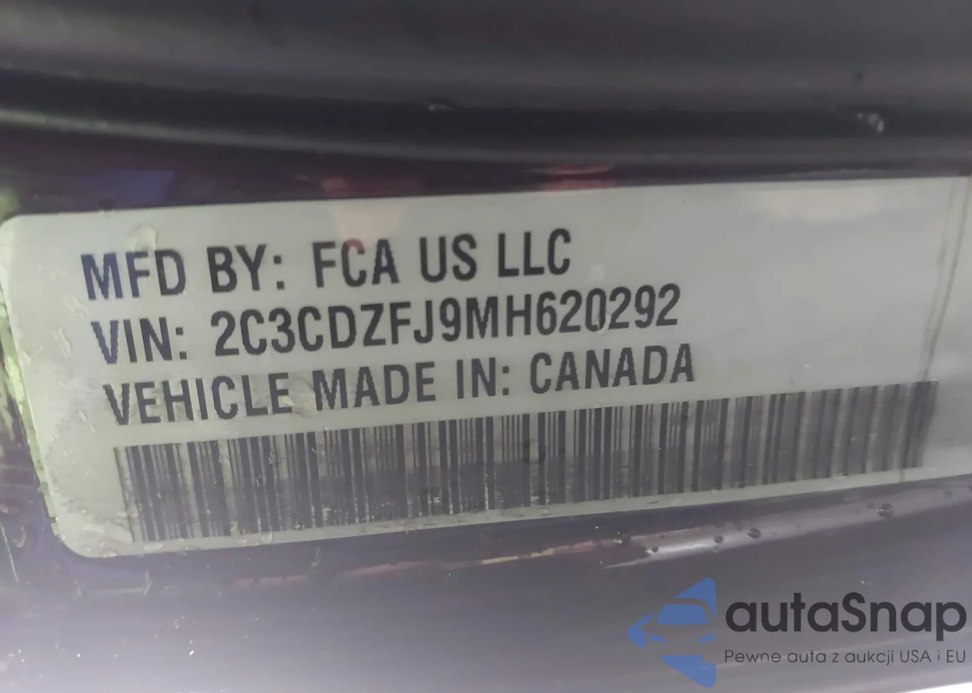• VIN 2C3CDZFJ9MH620292