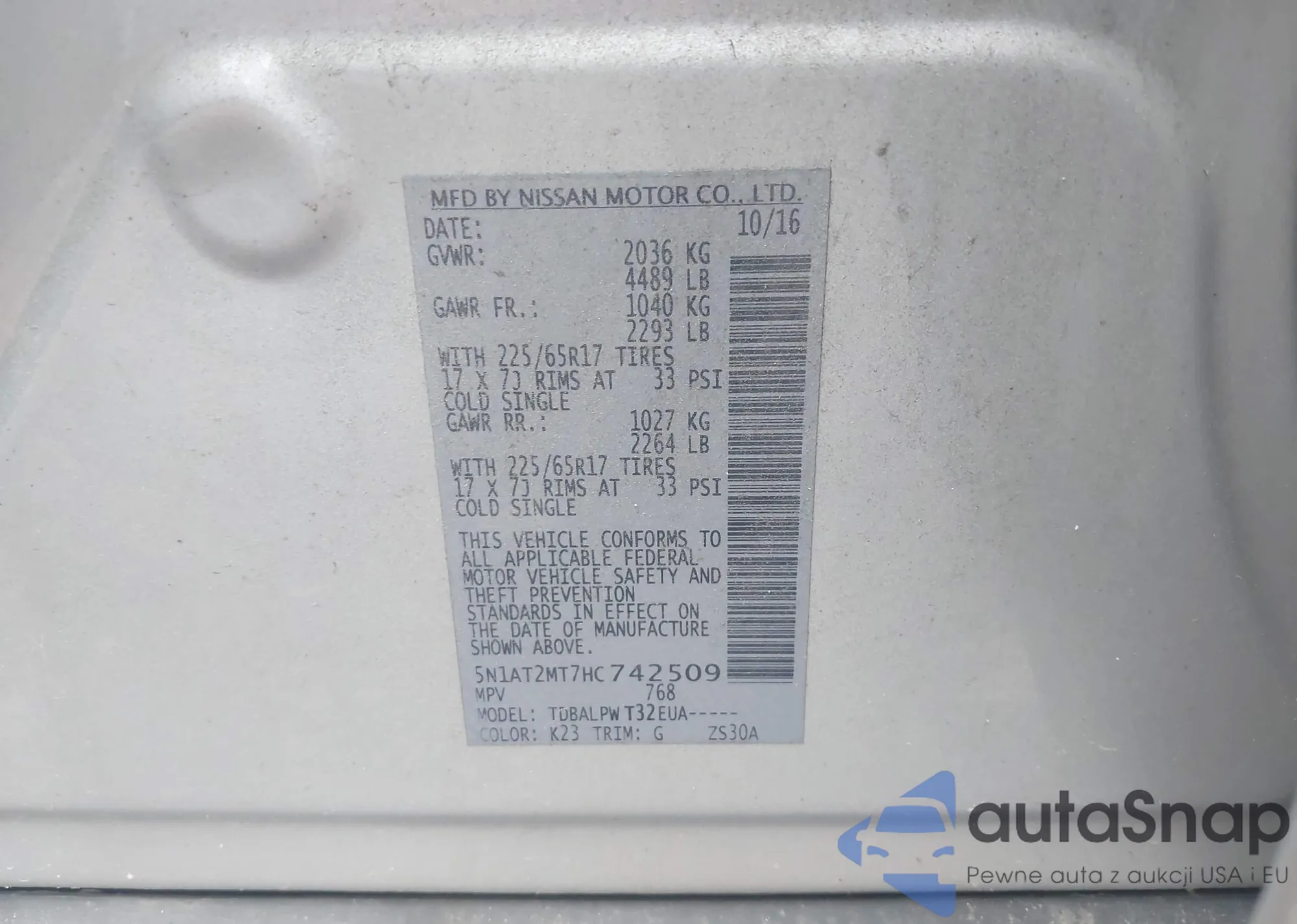 LOT: 42454093 VIN: 5N1AT2MT7HC742509