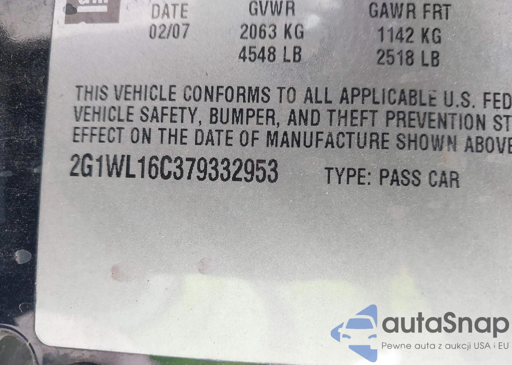 • VIN 2G1WL16C379332953