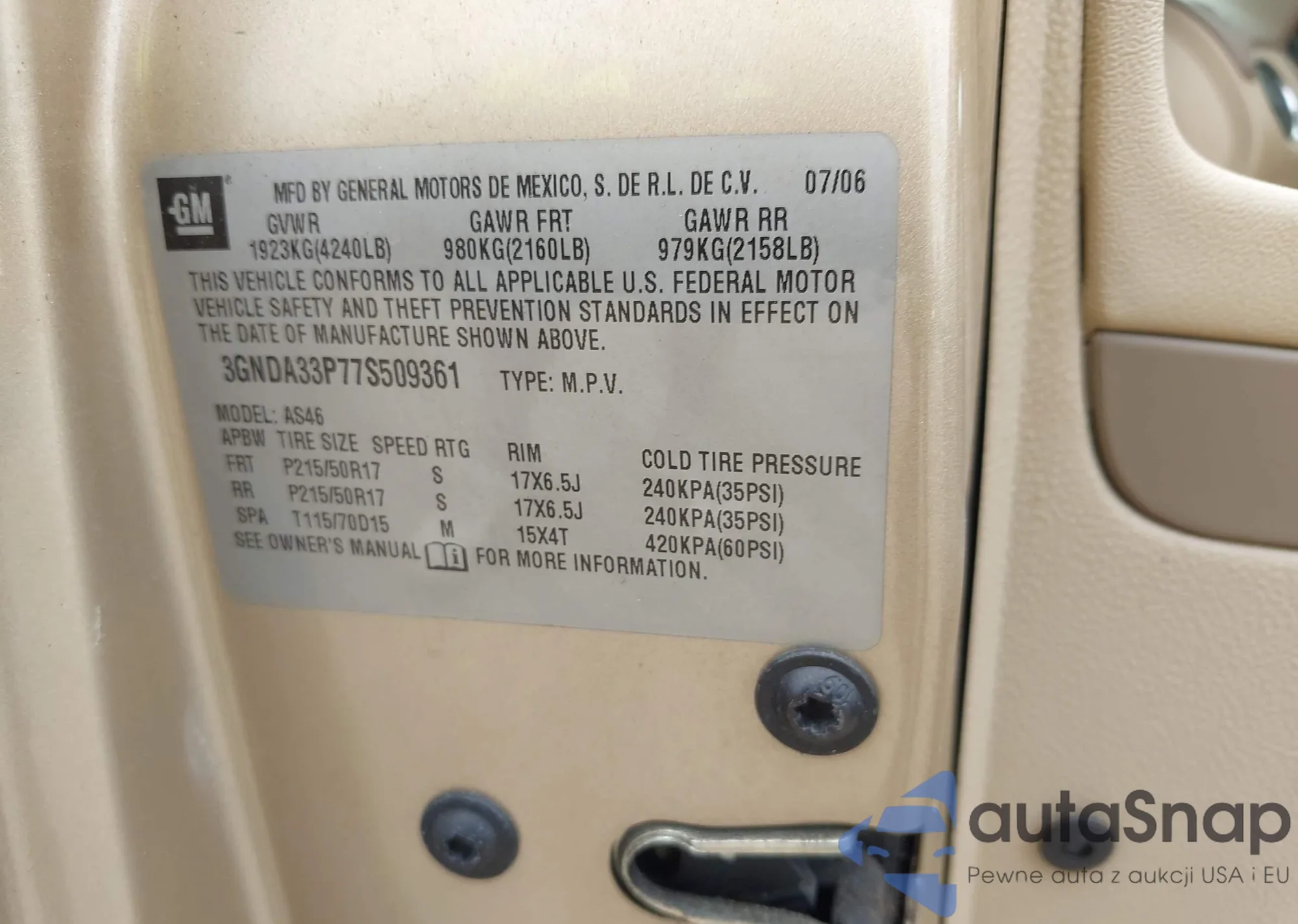 • VIN 3GNDA33P77S509361