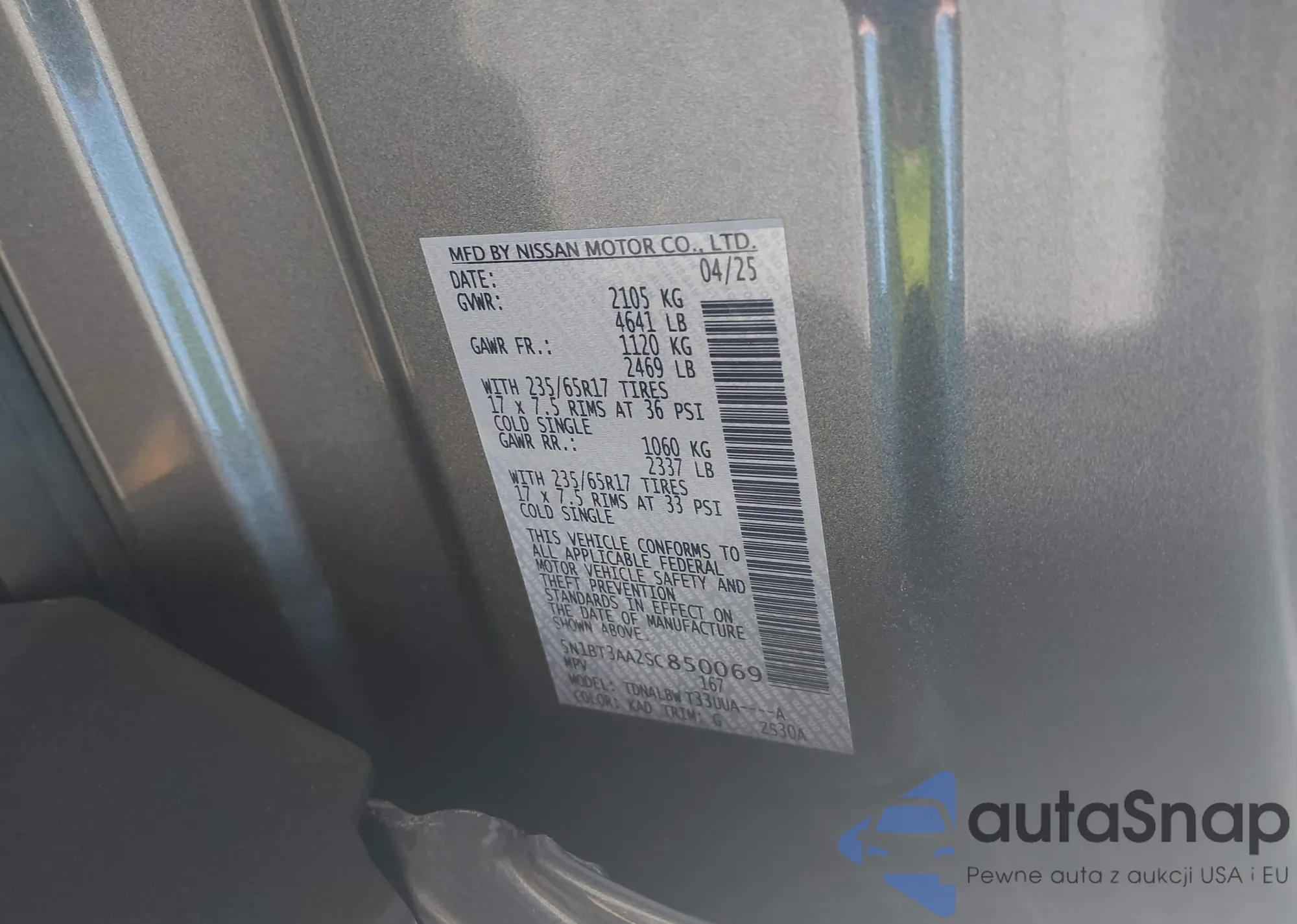 • VIN 5N1BT3AA2SC850069