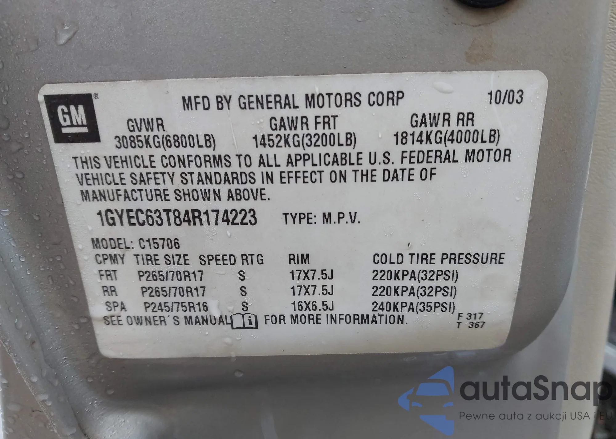 LOT: 41564380 VIN: 1GYEC63T84R174223