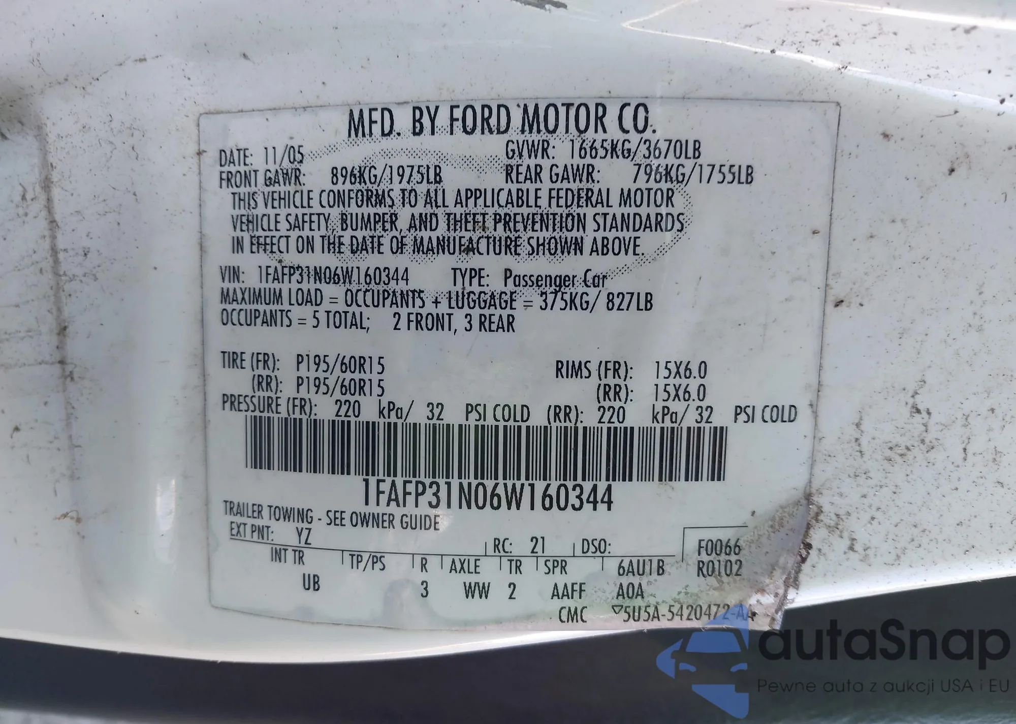 • VIN 5UXTY5C0XM9F11085