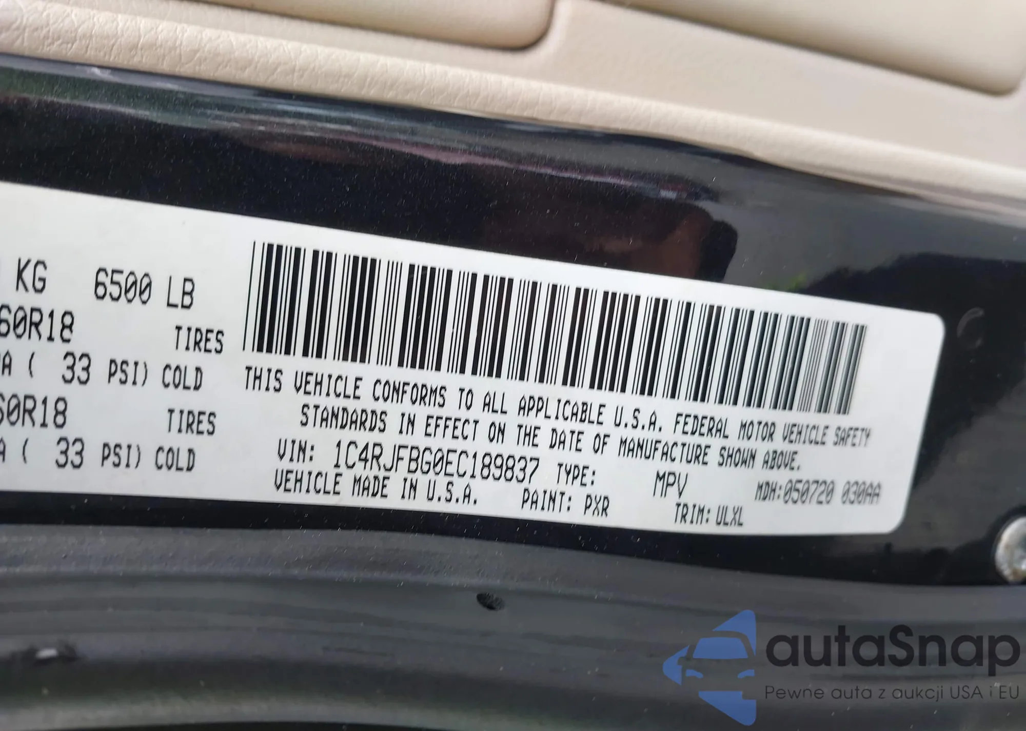 • VIN 1C4RJFBG0EC189837