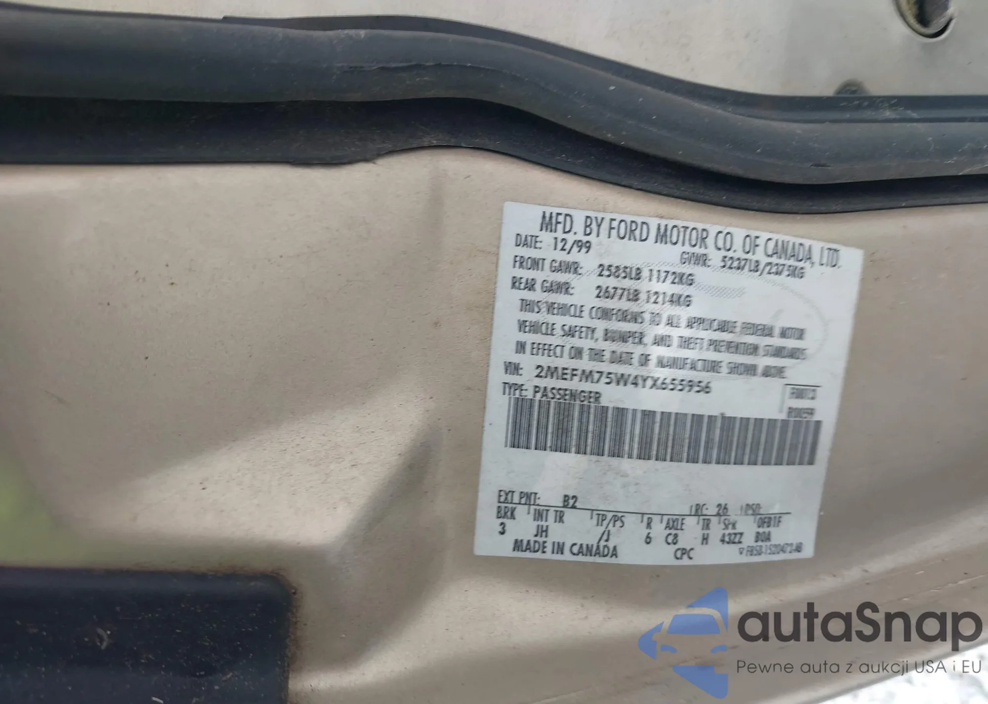 LOT: 42490918 VIN: 2MEFM75W4YX655956